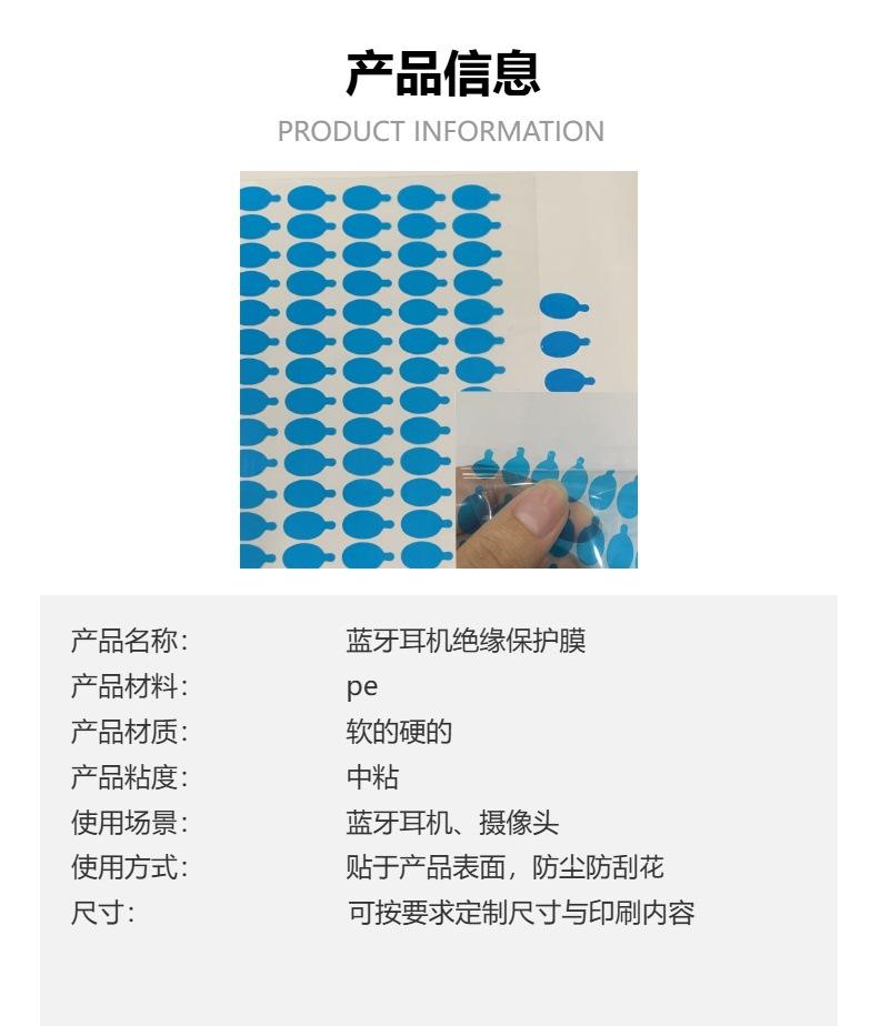 Película protectora aislante para auriculares Bluetooth, material transparente adhesivo azul PE, exclusiva transfronteriza, sin pegamento residual, buena adherencia.