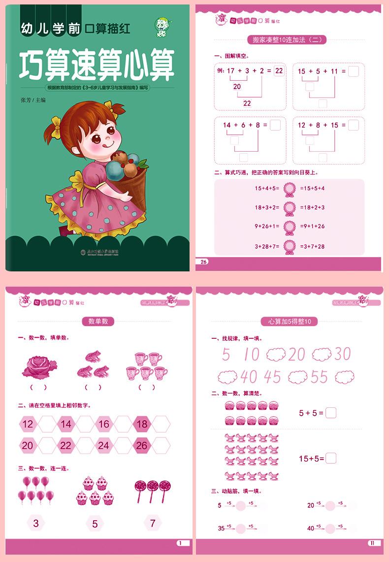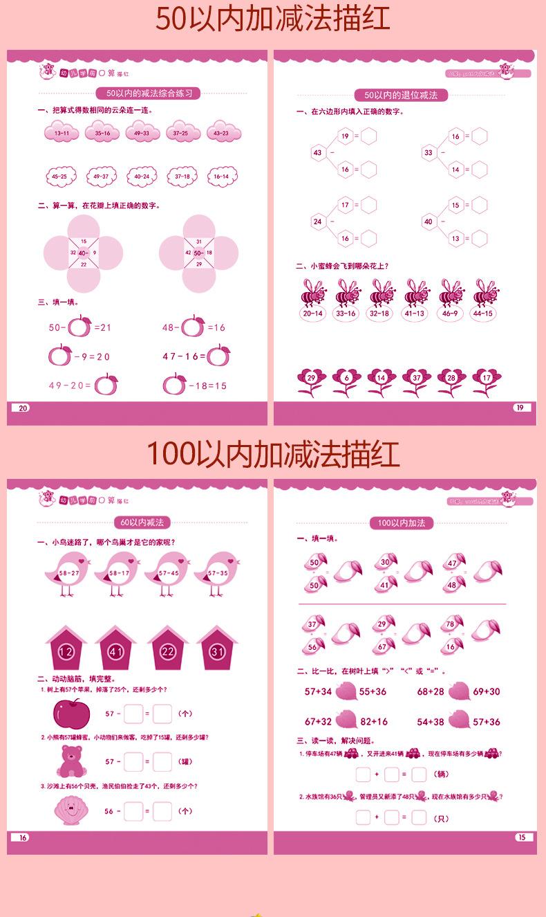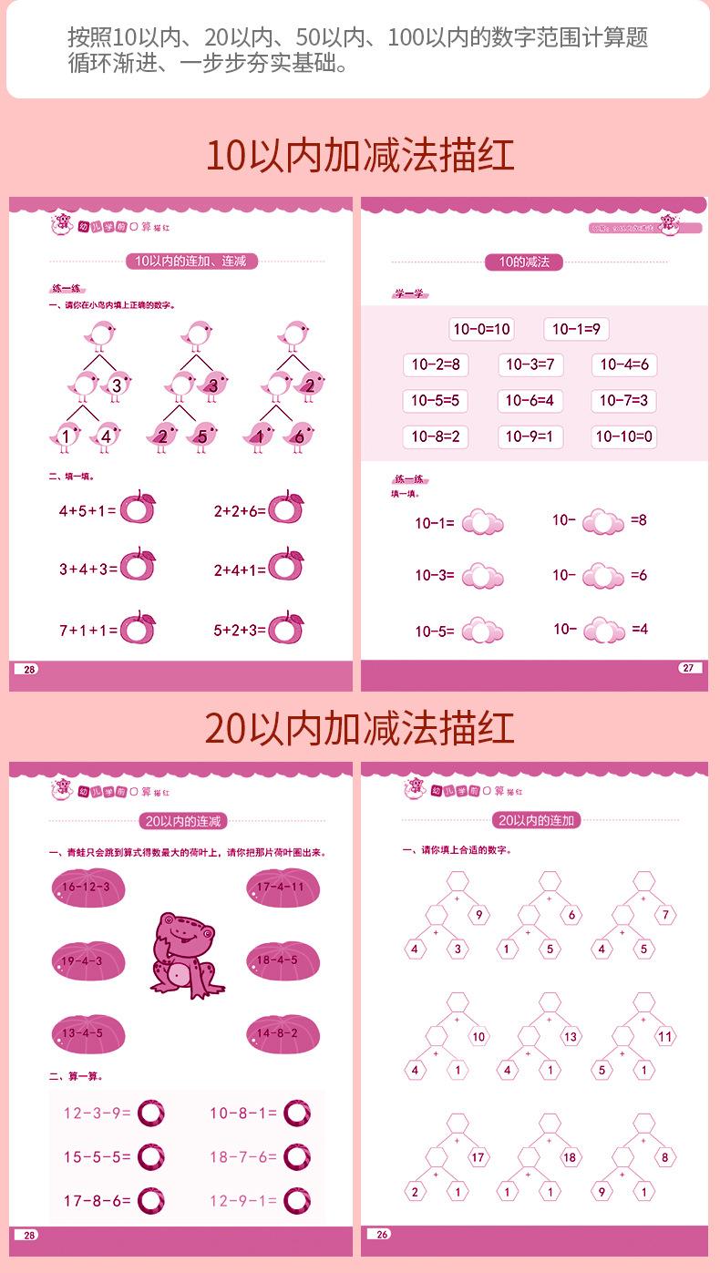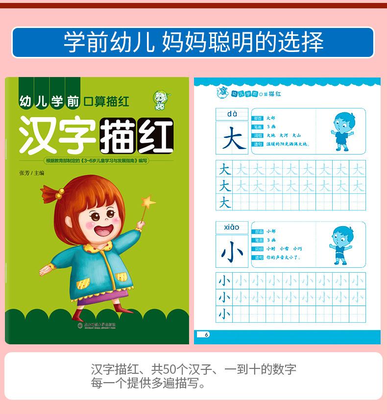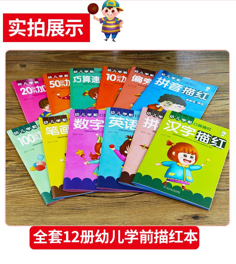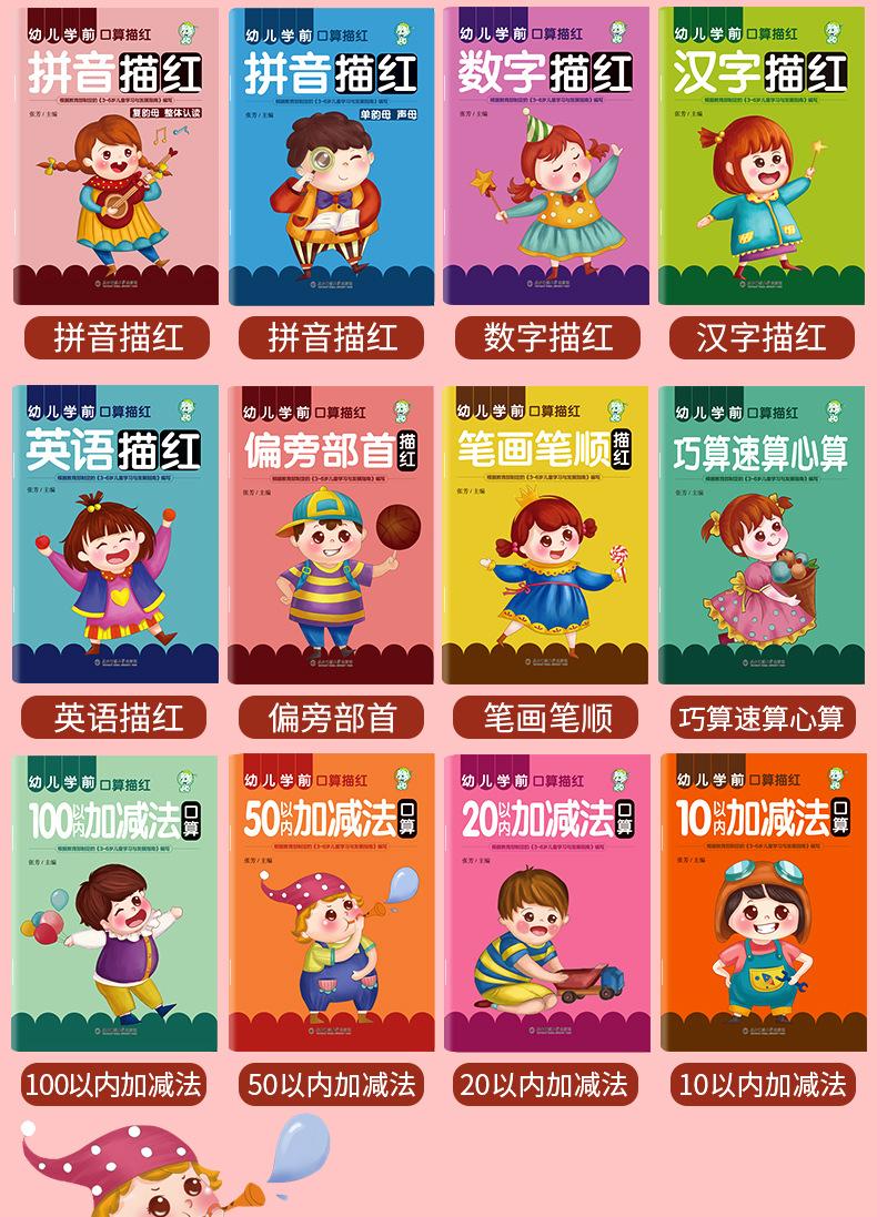 Transición de Preescolar a Jardín de Niños Alfabetización Preescolar Aritmética Oral Suma y Resta de Números Pinyin Libro de Trazos de Caracteres Chinos Libro de Ejercicios para Tarea
