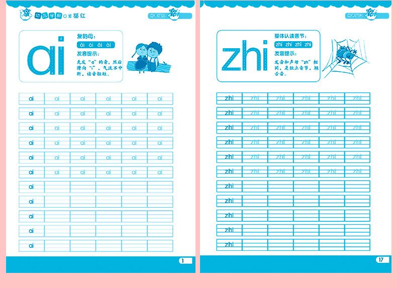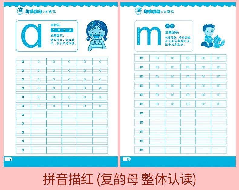 Style mixed hair, Chinese character tracing red, Pinyin tracing red (Compound vowels as a whole recognition), ...