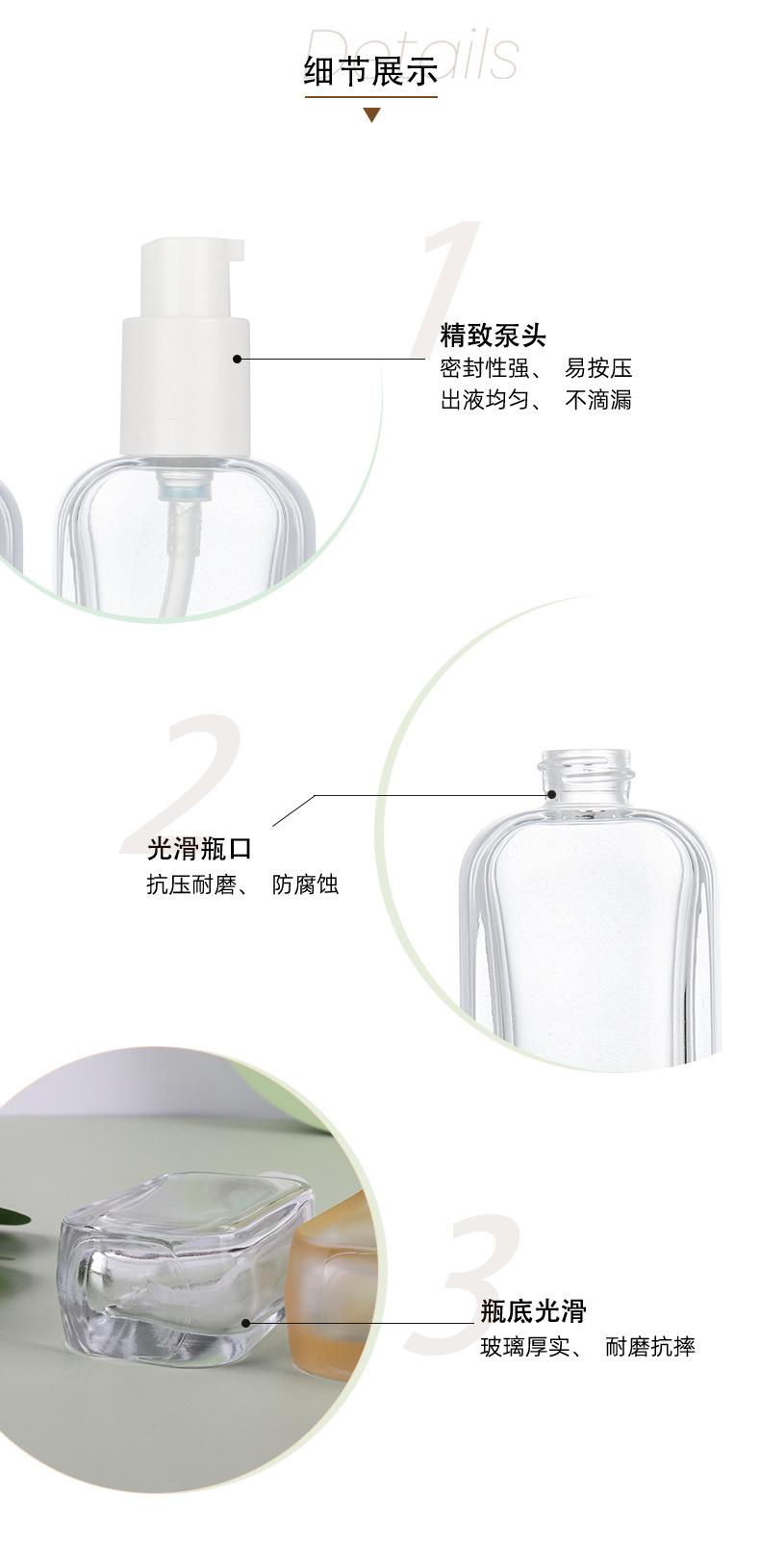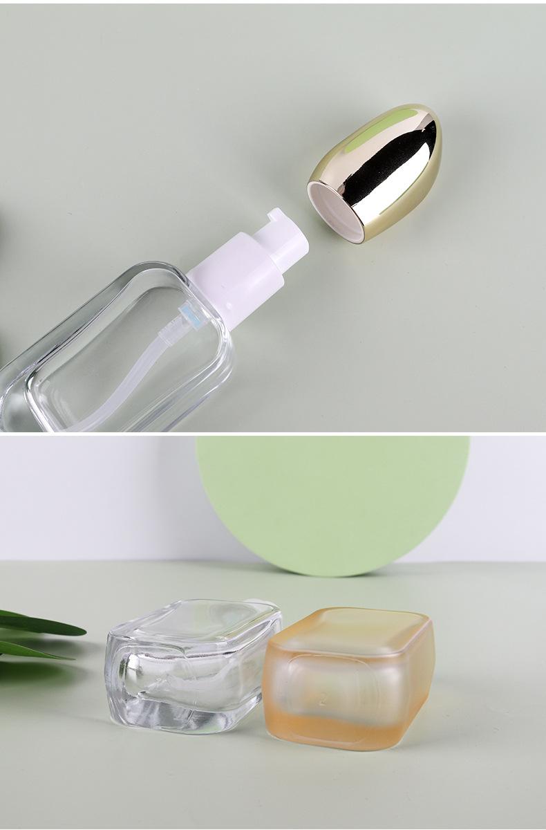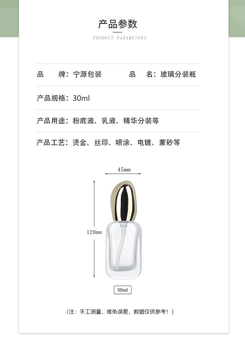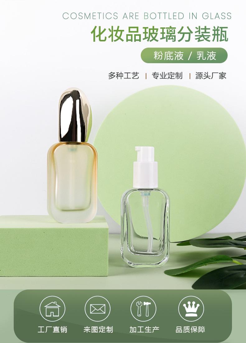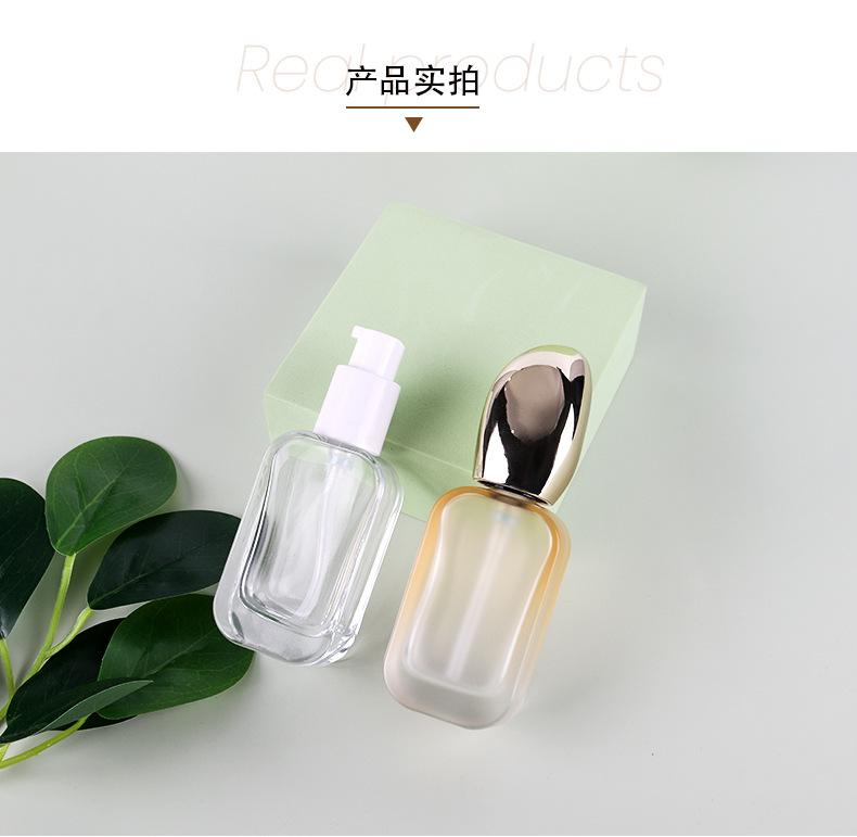 Botella de loción de esencia de fondo grueso de 30 ml, botella de vidrio ovalada, botella cosmética en stock, botella de base líquida, subbotella