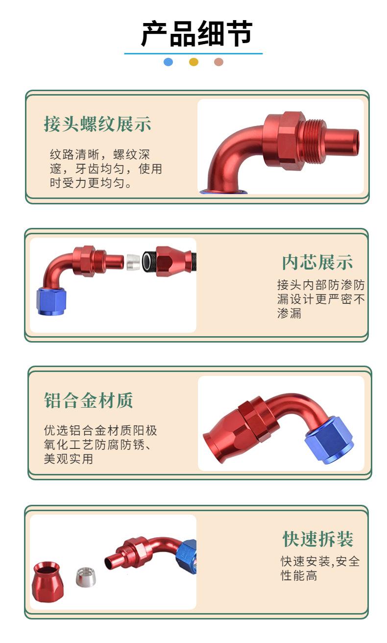 Piezas de modificación del enfriador de aceite de autopartes Dachi, conector rápido de PTFE AN3-AN12, tubo de enfriamiento de aceite de boca acampanada de PTFE