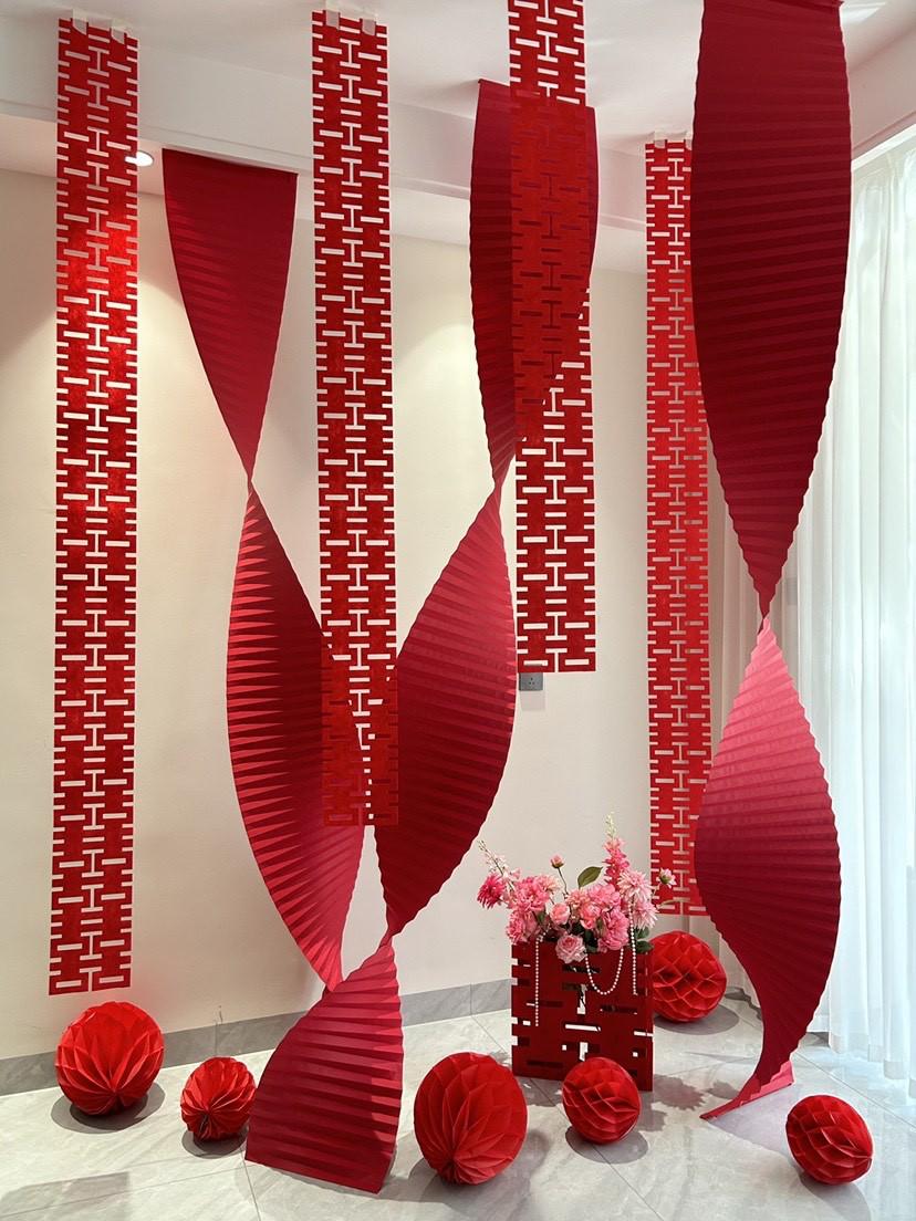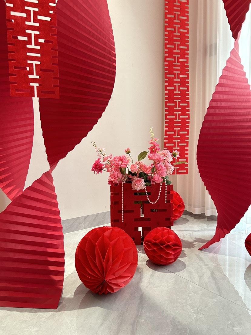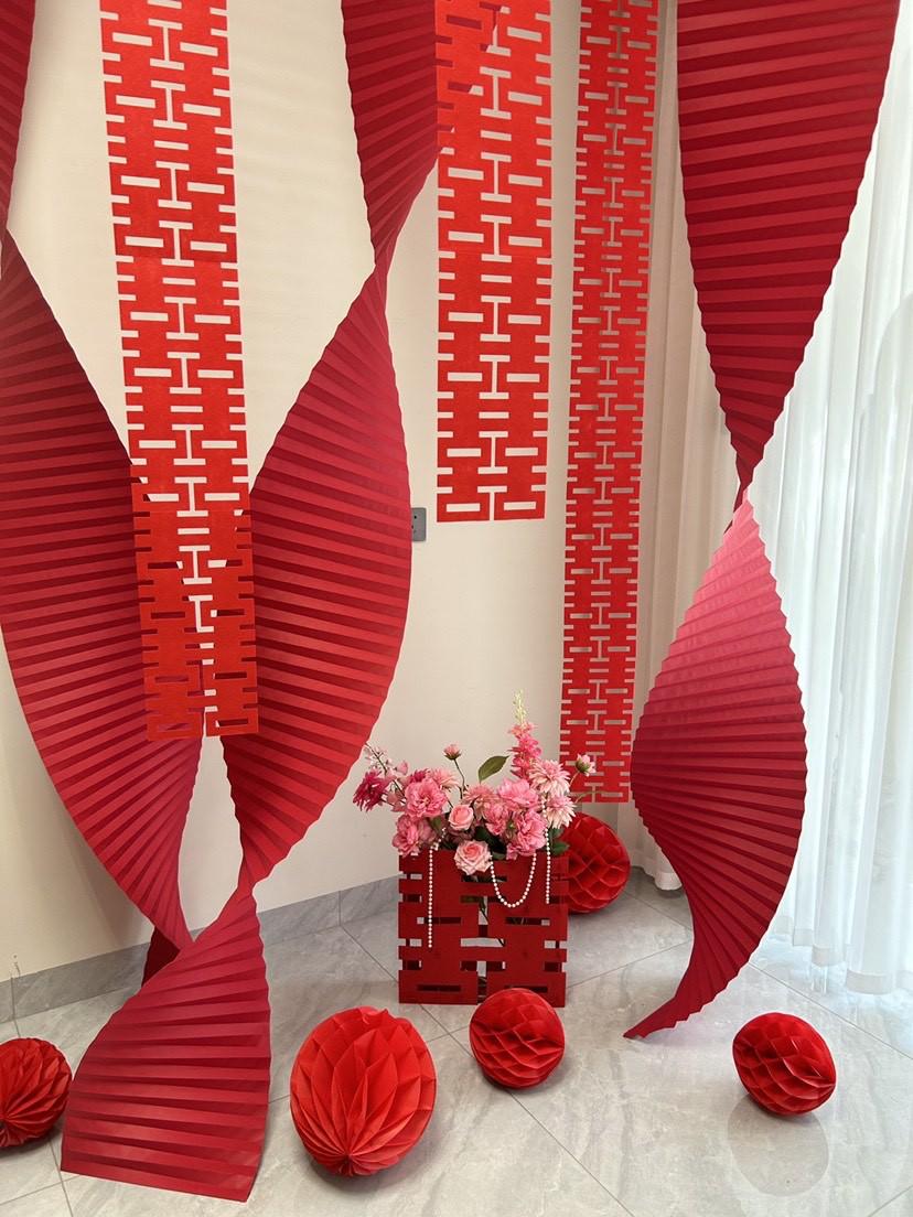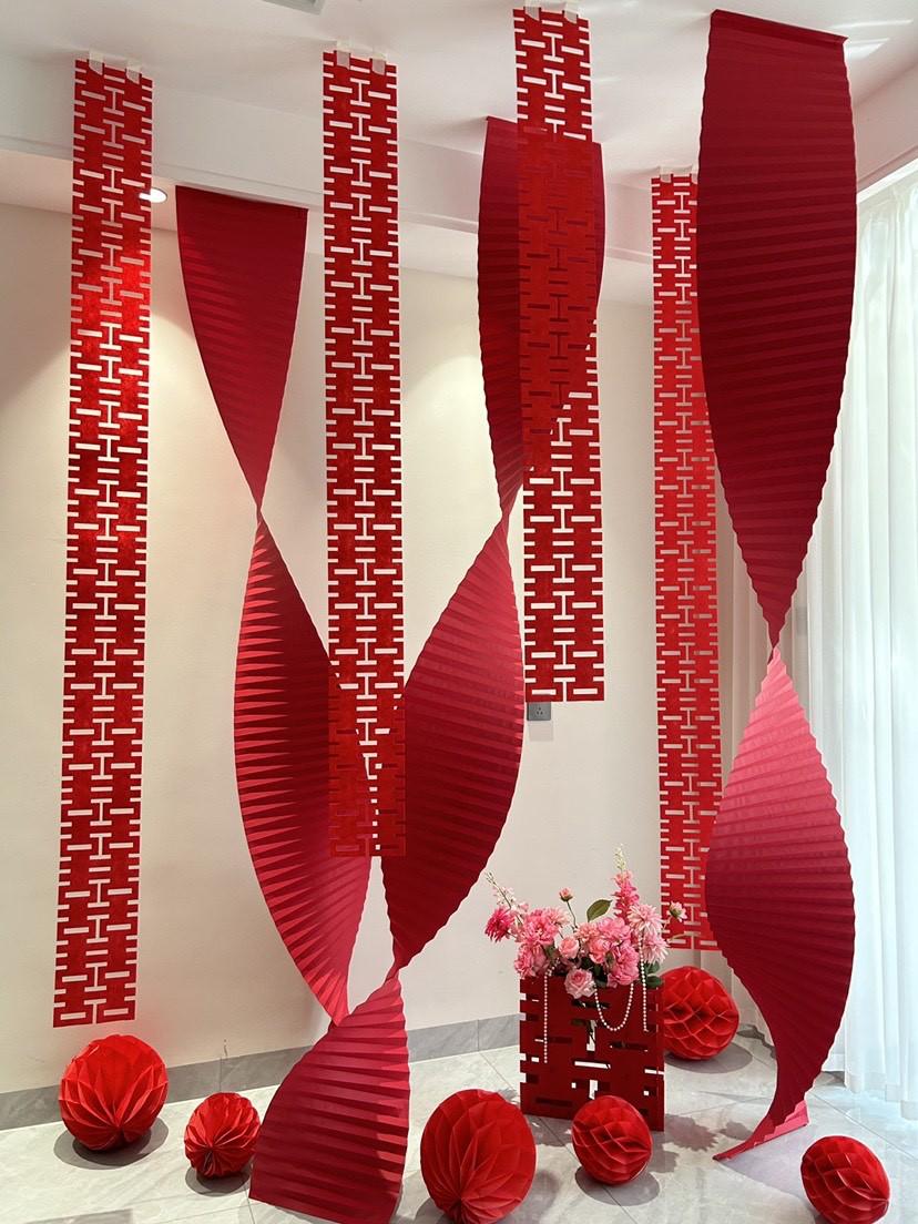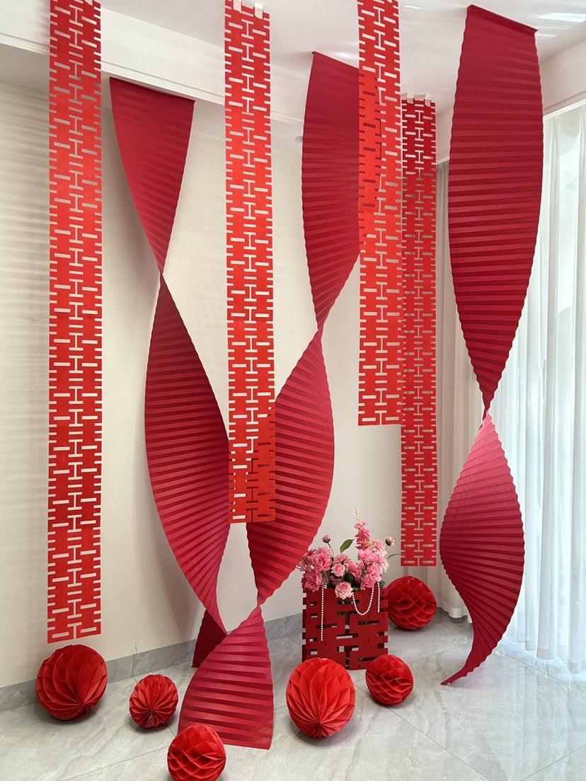 Decoración de boda Decoración Farolillo de papel chino rojo Decoración de boda Decoración de habitación de boda Fondo de boda Pared Origami
