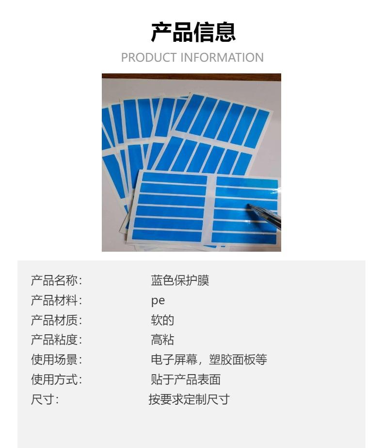 Película protectora de PE pantalla electrónica PE azul alta viscosidad pegamento no residual buen desgarro buena pasta translúcida pasta de succión de polvo