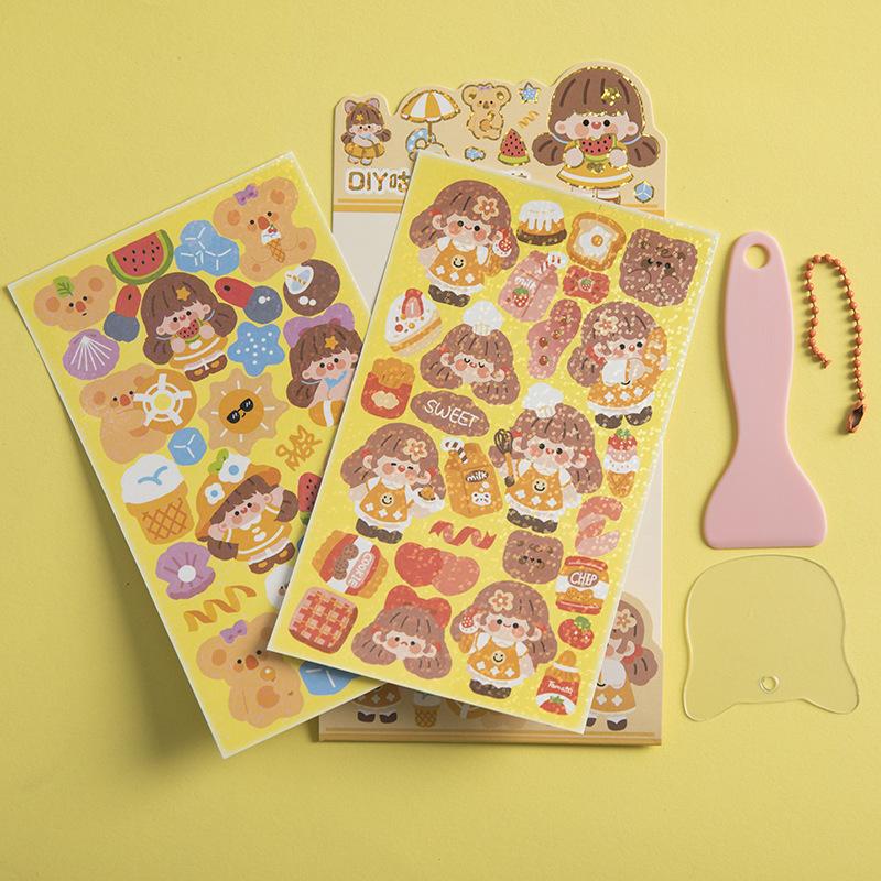 Bonita pegatina de tarjeta antigua para bolsa, material de cuenta de mano, pegatina impermeable para cuenta de mano, pegatina de dibujos animados para niñas y niños, venta al por mayor
