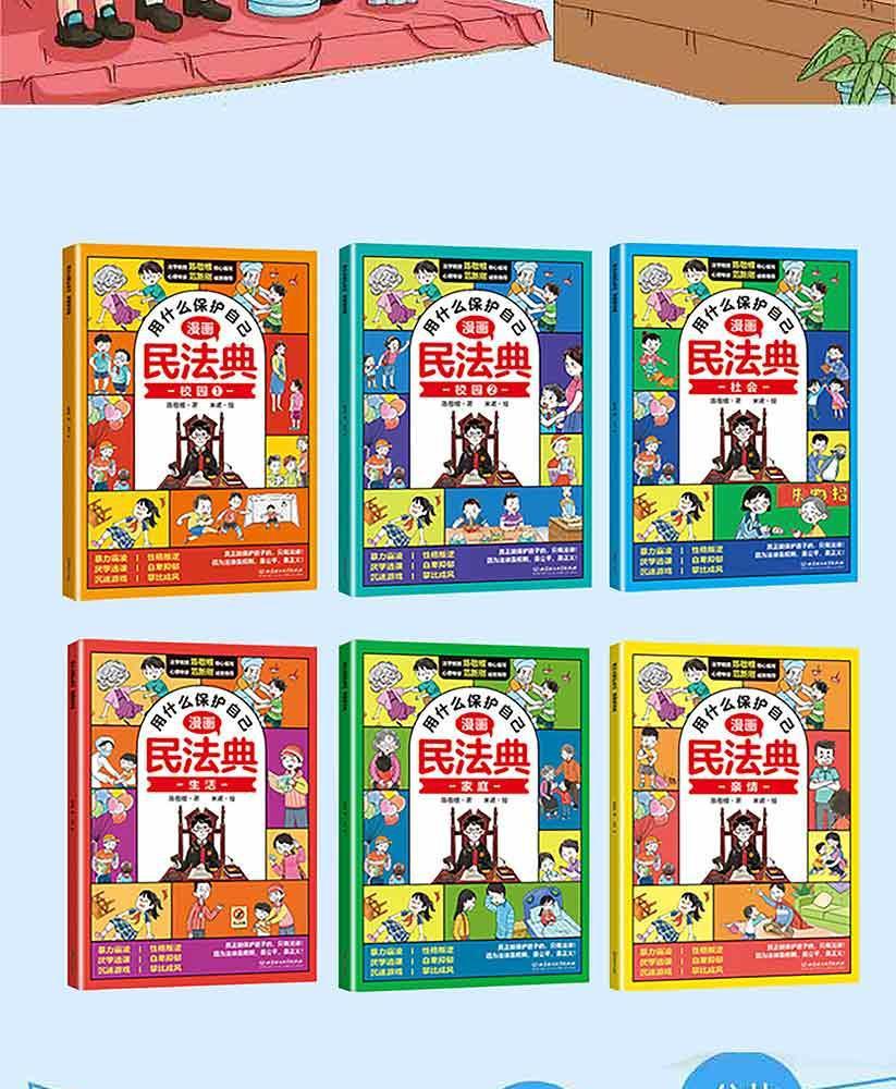 Edición de dibujos animados Código Civil Todos los 6 libros Edición infantil Qué protegerse con dibujos animados Libro de ilustración jurídica para principiantes