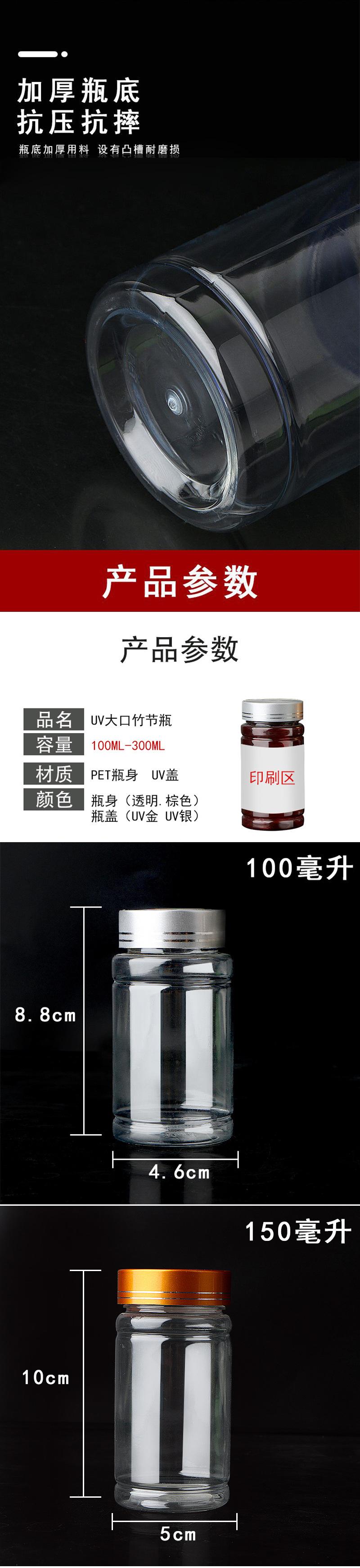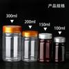 Botella de cápsula al por mayor de 100 ml y 150 ml, botella de medicina con tapa dorada y plateada, botella de plástico PET transparente de boca ancha, botella para el cuidado de la salud.