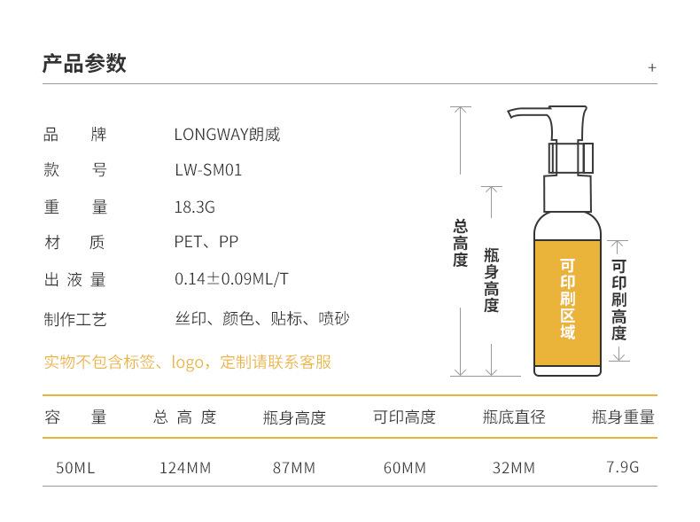50ml/transparent bottle + r20 transparent oil pump; plastic, 50ml/transparent bottle + r20 white oil pump; pla...
