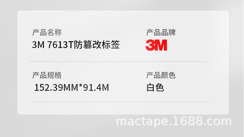 Etiqueta a prueba de manipulaciones 3M7613T etiqueta frágil antifalsificación blanca etiqueta de impresión por transferencia térmica