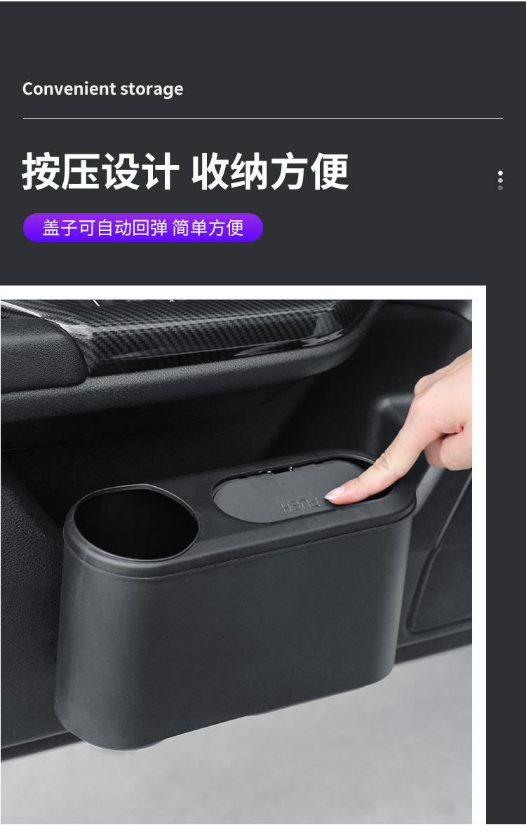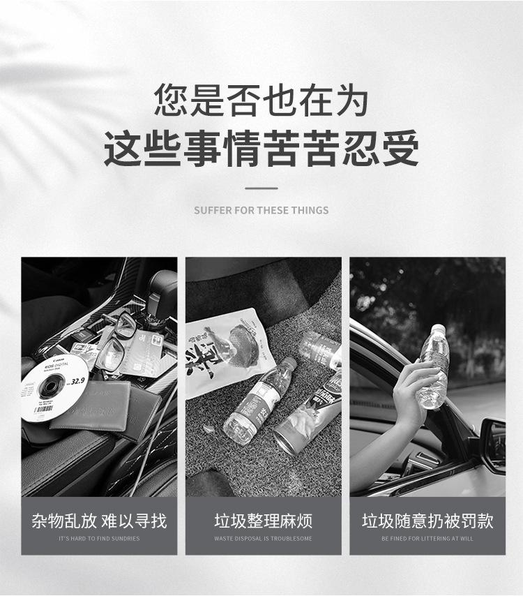 1. Bote de basura montado en la puerta, superficie de cuero en varios coloresconfiguraciónDiga adiós al espacio interior desordenado del coche.