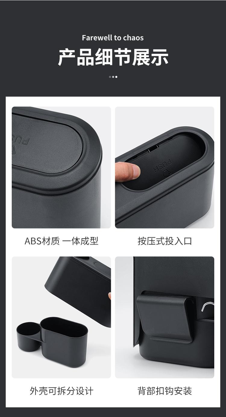 2. Diseño de entrada tipo push, la tapa puede rebotar automáticamente.El gancho trasero está instalado, adecuado para múltiples escenarios.