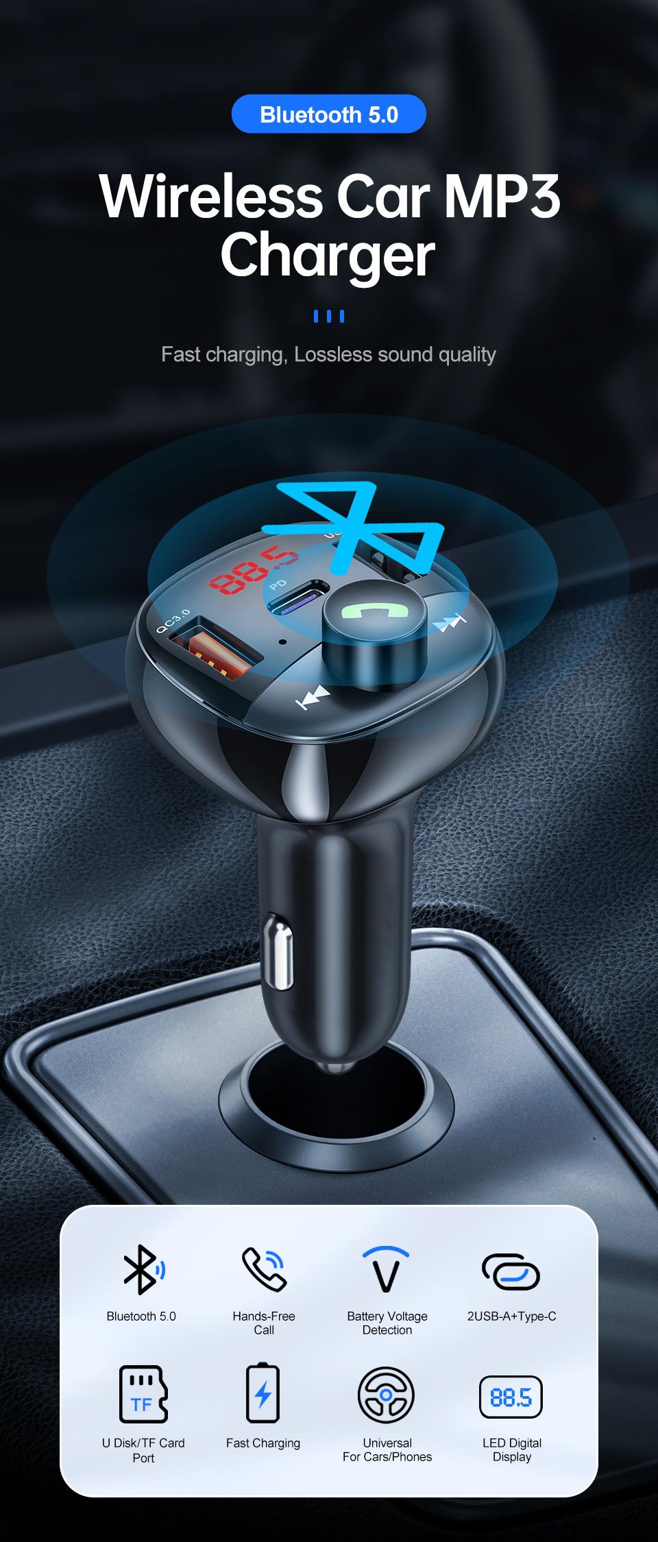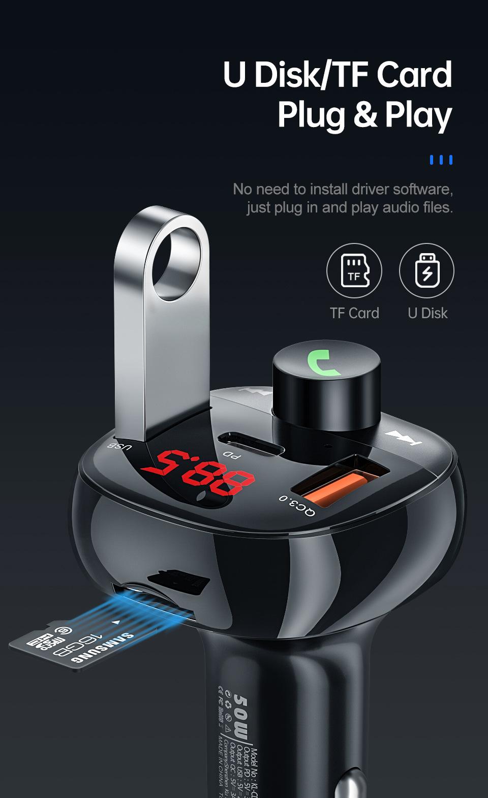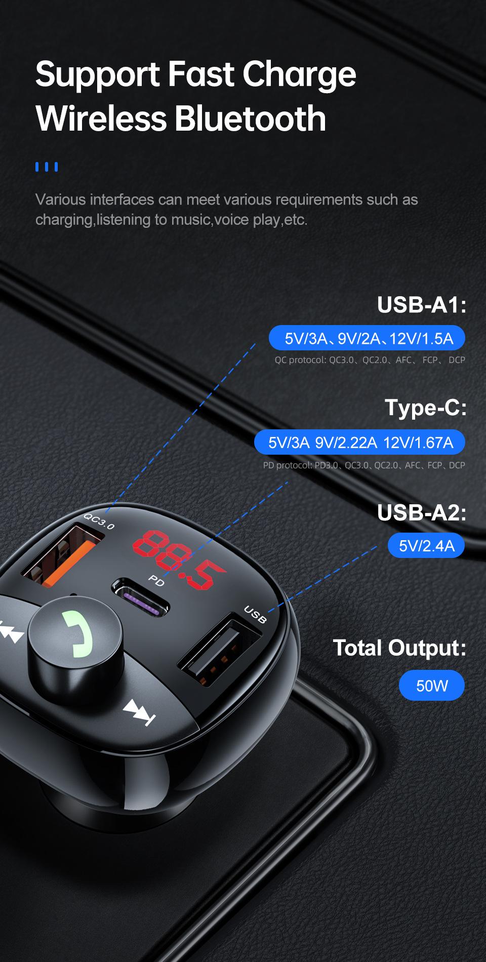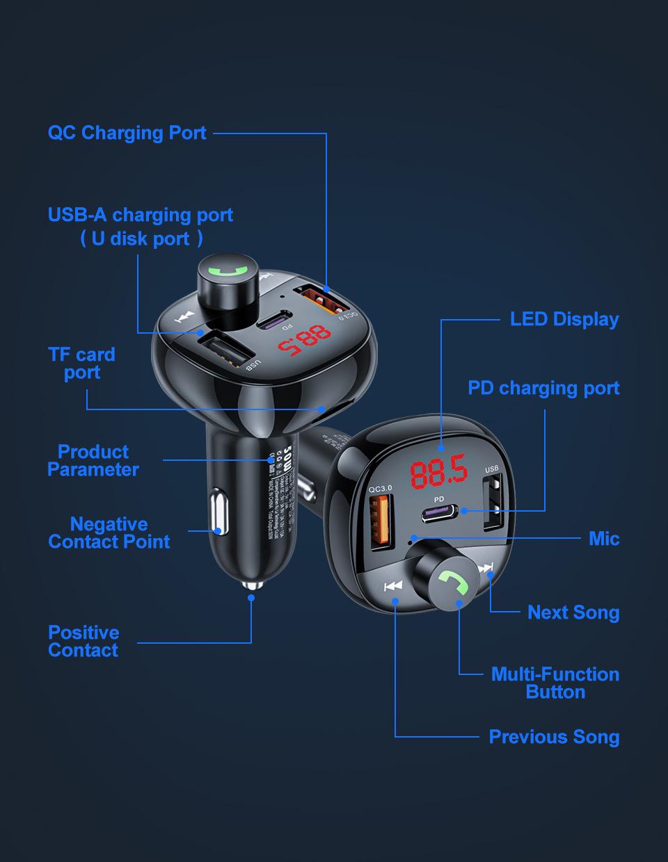 【Función del producto】: reproducción de música/navegación, reproducción de disco U/tarjeta TF, llamadas manos libres, carga rápida dual USB + PD