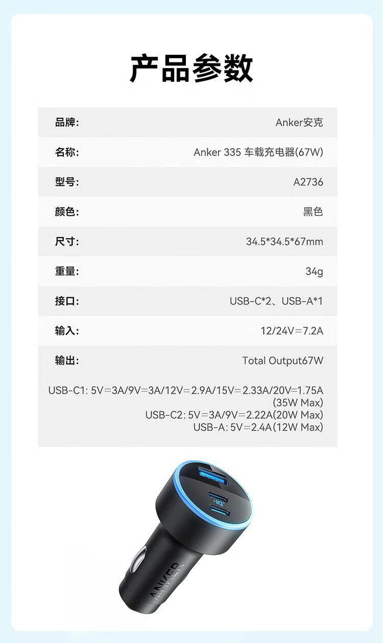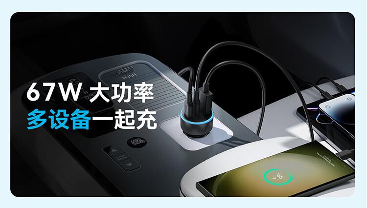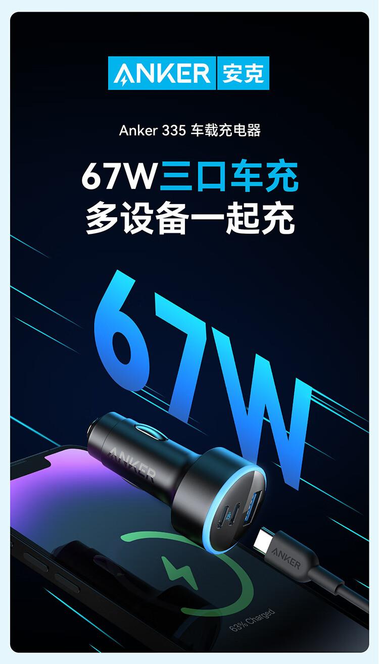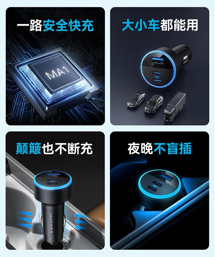 Anker Anke 67W cargador de coche de carga rápida de alta potencia de tres puertos 2C1A para Android Apple A2736