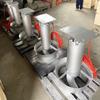 El sistema de instalación III se compone principalmente de un polipasto de cadena manual, un marco de elevación, un asiento de suspensión, una cadena de elevación, un marco de soporte superior, una varilla guía, un marco de soporte intermedio (no necesario si la profundidad de la piscina es ≤4 m), un marco de límite, una base, etc. La varilla guía se coloca en el eje concéntrico del marco de soporte superior, el marco de soporte intermedio y la base mediante un eje giratorio soldado al cuerpo. Puede girar ±60° en el plano horizontal para adaptarse a la mezcla o al impulso del flujo en diferentes direcciones, eliminar zonas muertas en la piscina y mantener el flujo de agua en un estado operativo adecuado. El agitador sumergible se mueve verticalmente a lo largo de la varilla guía mediante una rueda guía; el marco de elevación se puede instalar en el soporte y girar 360° alrededor de su eje de posicionamiento para facilitar la instalación y el mantenimiento. Para aumentar la fiabilidad del agitador sumergible durante su funcionamiento y reducir sus vibraciones, el marco de límite generalmente se suelda directamente a la varilla guía y se añade un bloque amortiguador entre el agitador sumergible y el marco de límite. El marco de límite se puede soldar a la varilla guía antes de salir de fábrica o durante la instalación in situ. Si el usuario no tiene requisitos especiales, generalmente se suelda antes de salir de fábrica. El sistema de instalación se conecta a la cimentación mediante placas de acero empotradas soldadas.
