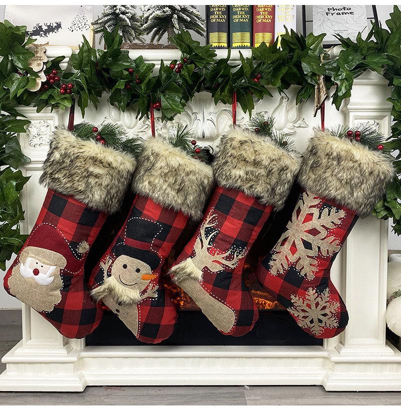 Nuevas decoraciones navideñas calcetines de lino grandes Papá Noel muñeco de nieve calcetines para regalos calcetines para dulces bolsas de regalo