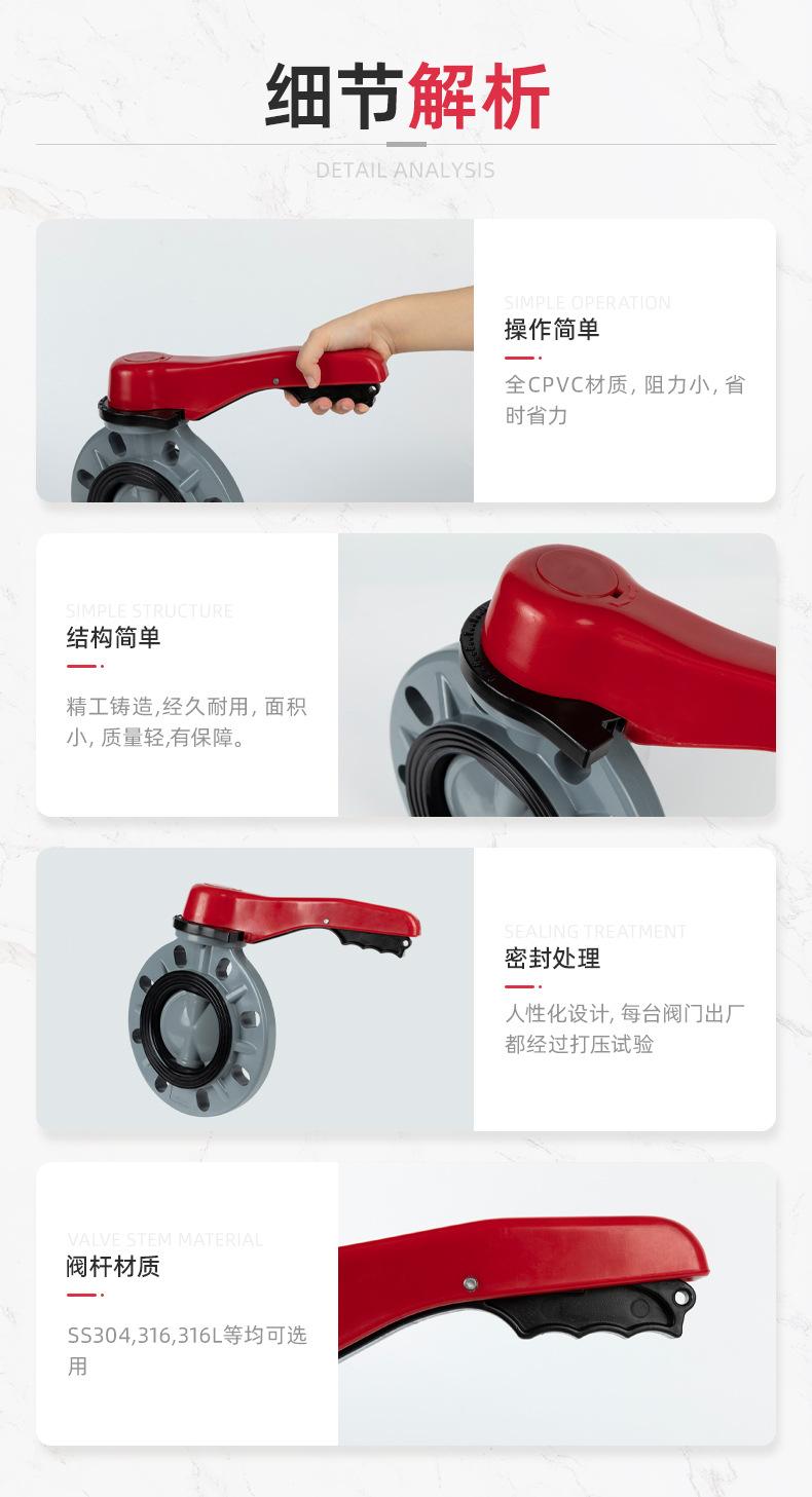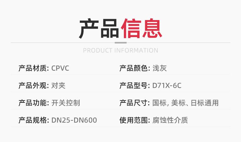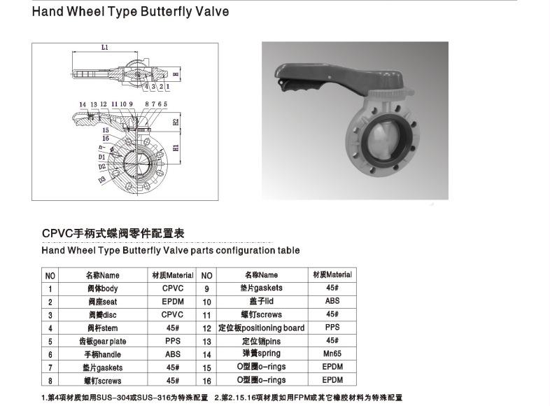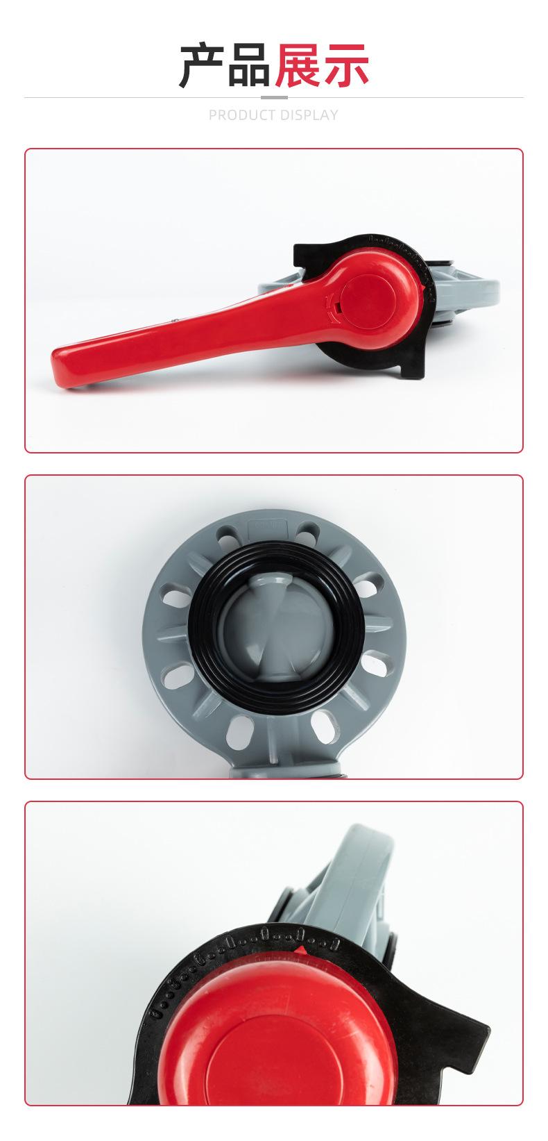 Color de la válvula de mariposa con manija de CPVC: gris. Modelo: D71X-6S Especificación: DN25--150.