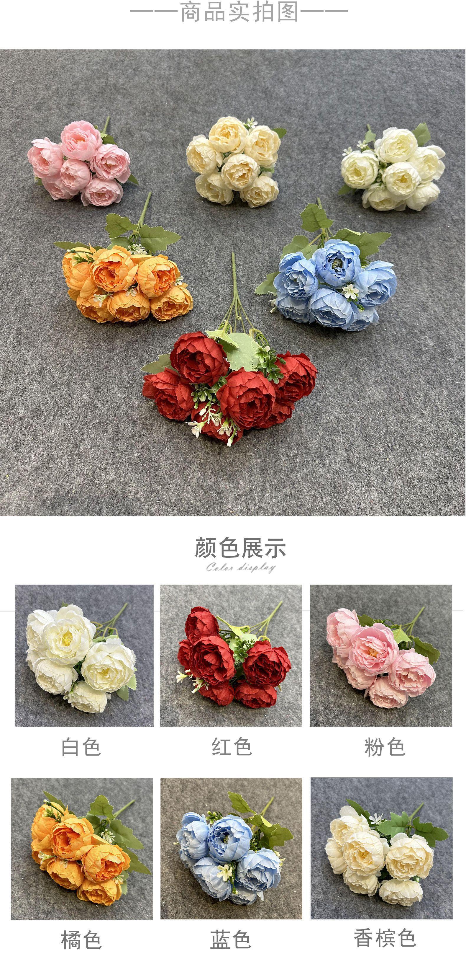 Flores Artificiales de Peonía de Primavera de 6 Cabezas para Decoración de Boda, Adornos de Arreglo Floral de Alta Gama para Sala de Estar