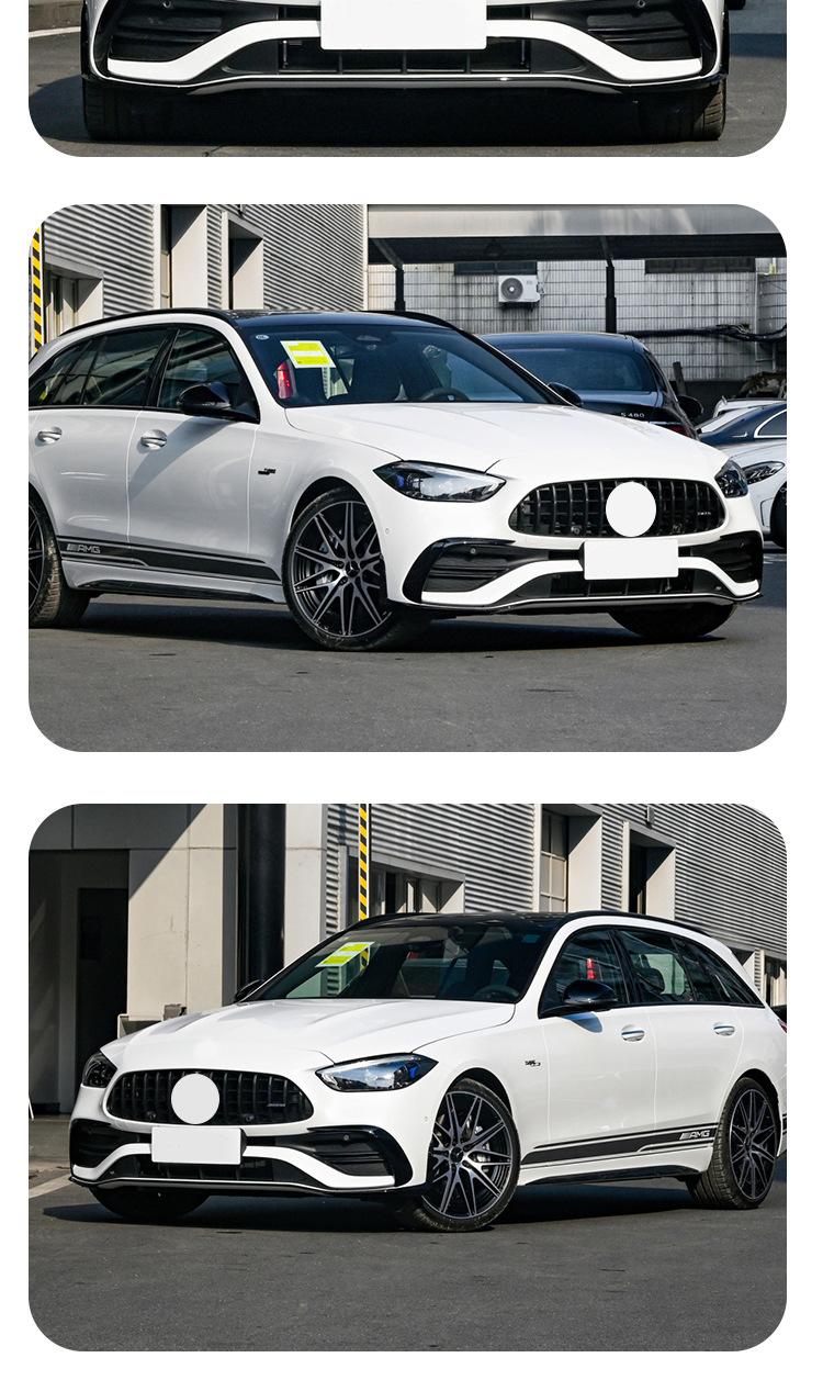 Aplicable a Mercedes-Benz Clase C, labio delantero, cuchilla de viento W206 cambiado a C43AMG, cuchilla de viento, alerón delantero negro brillante, kit de cuchilla de viento