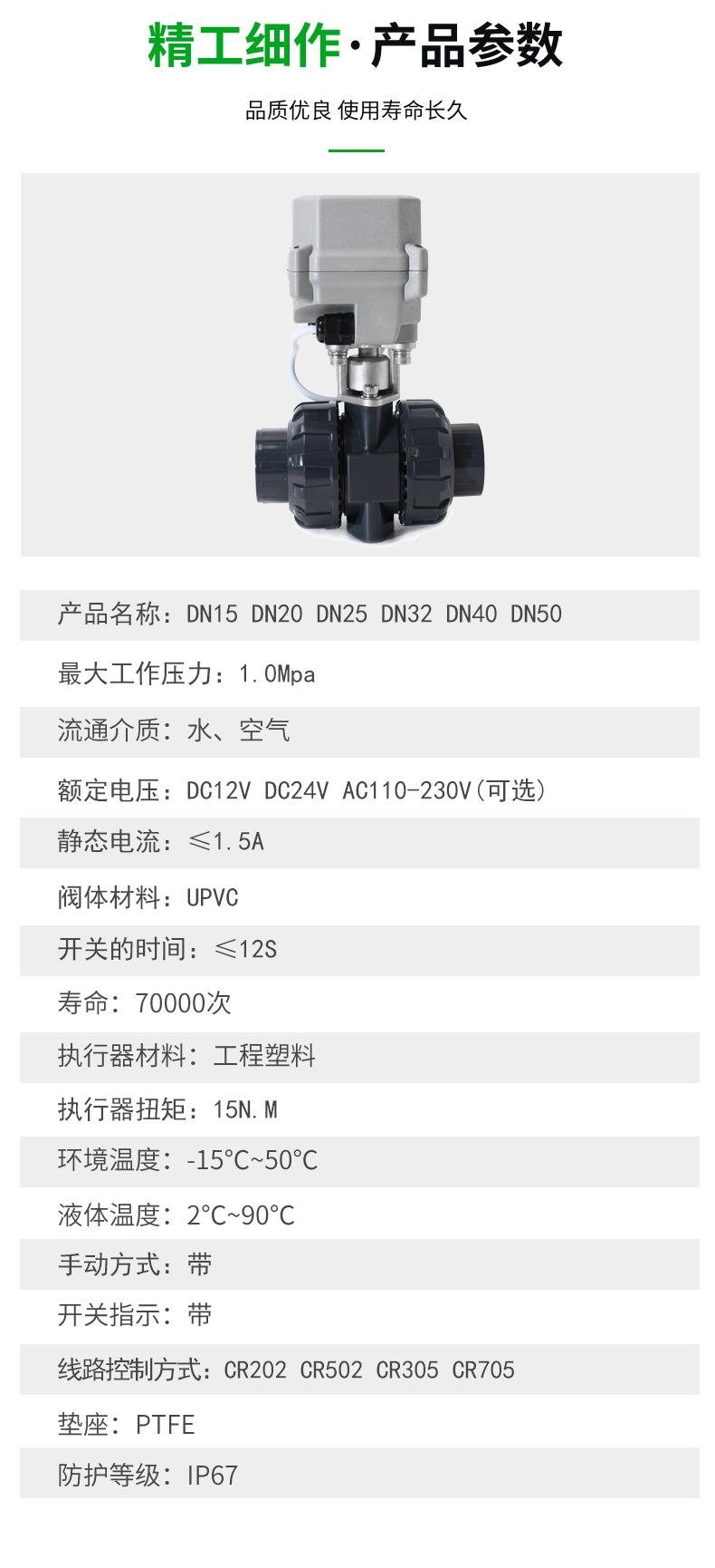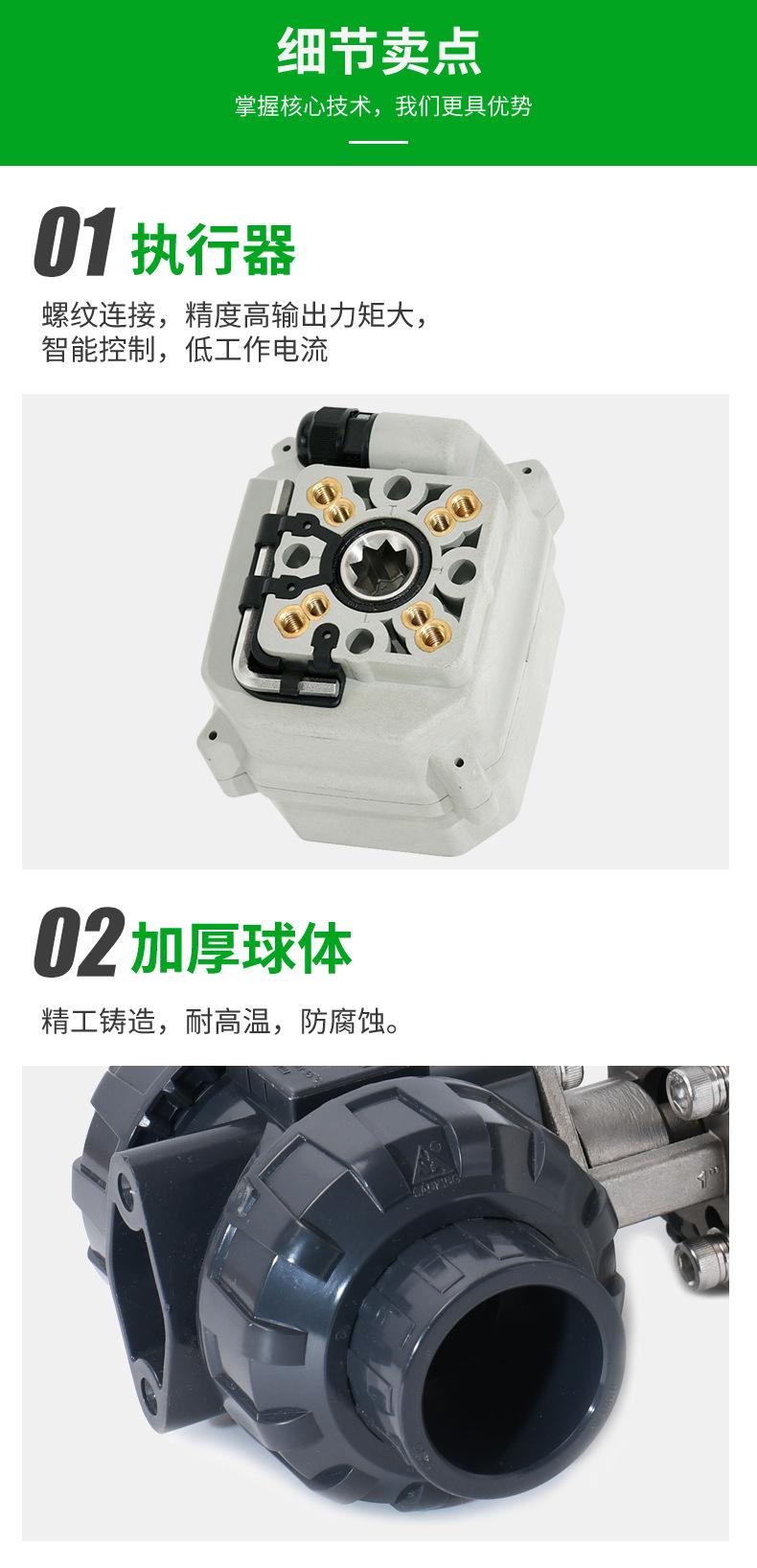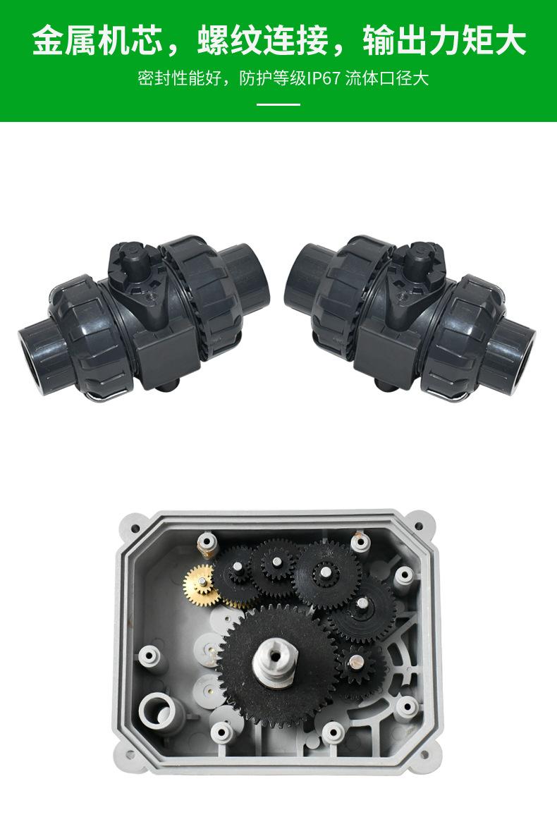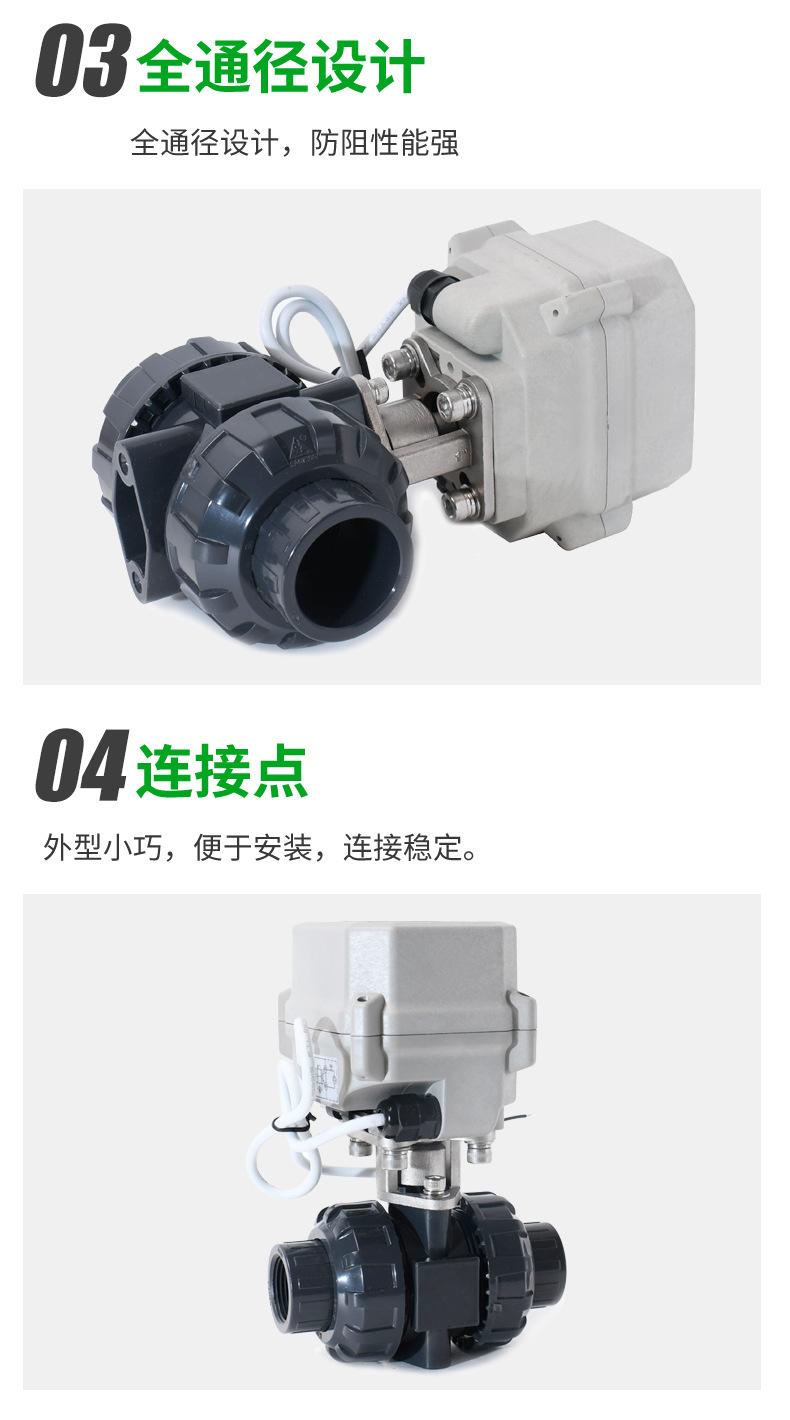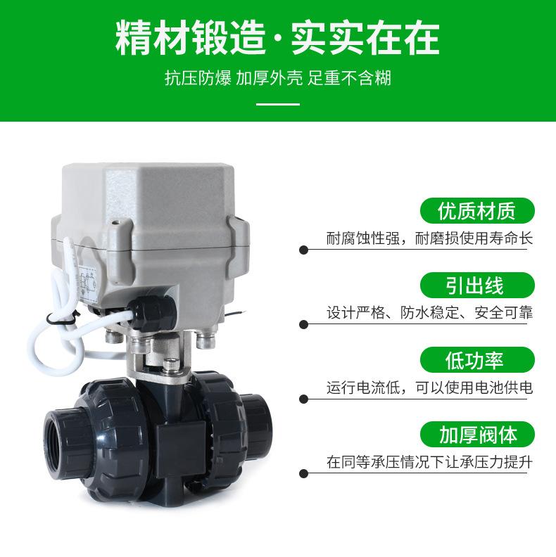 Válvula de bola de UPVC de 4-2 pulgadas con reinicio manual por corte de energía, doble unión, plástico, resistente a ácidos y álcalis, válvula de bola eléctrica