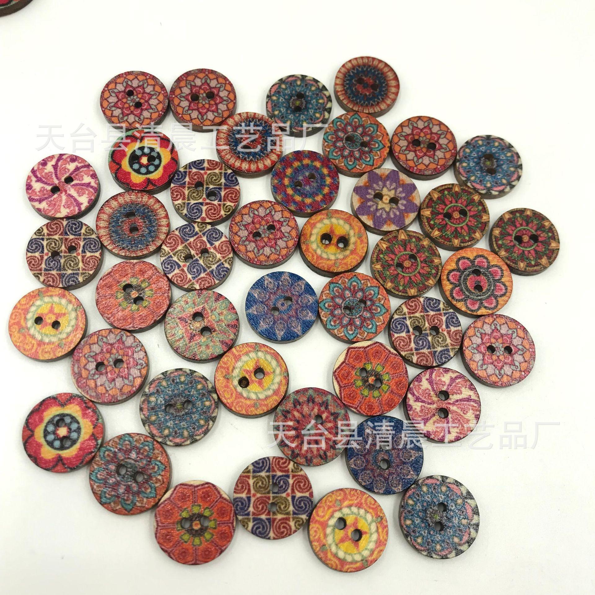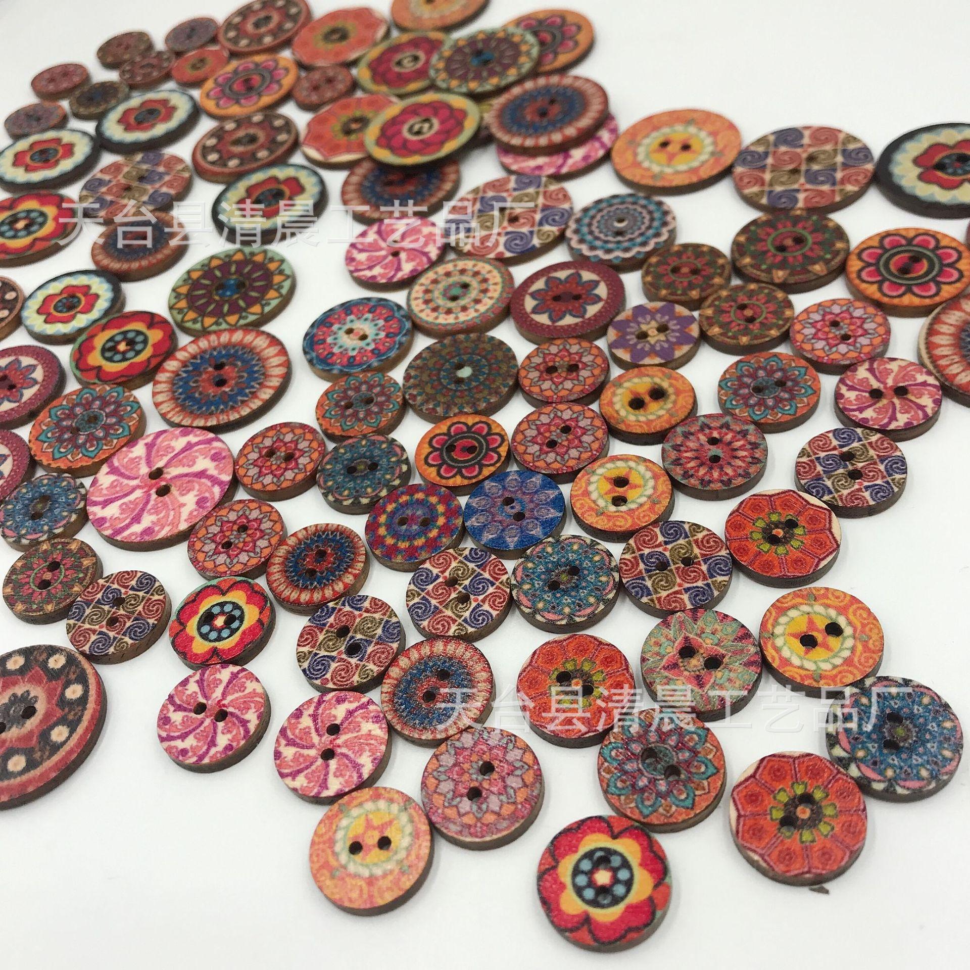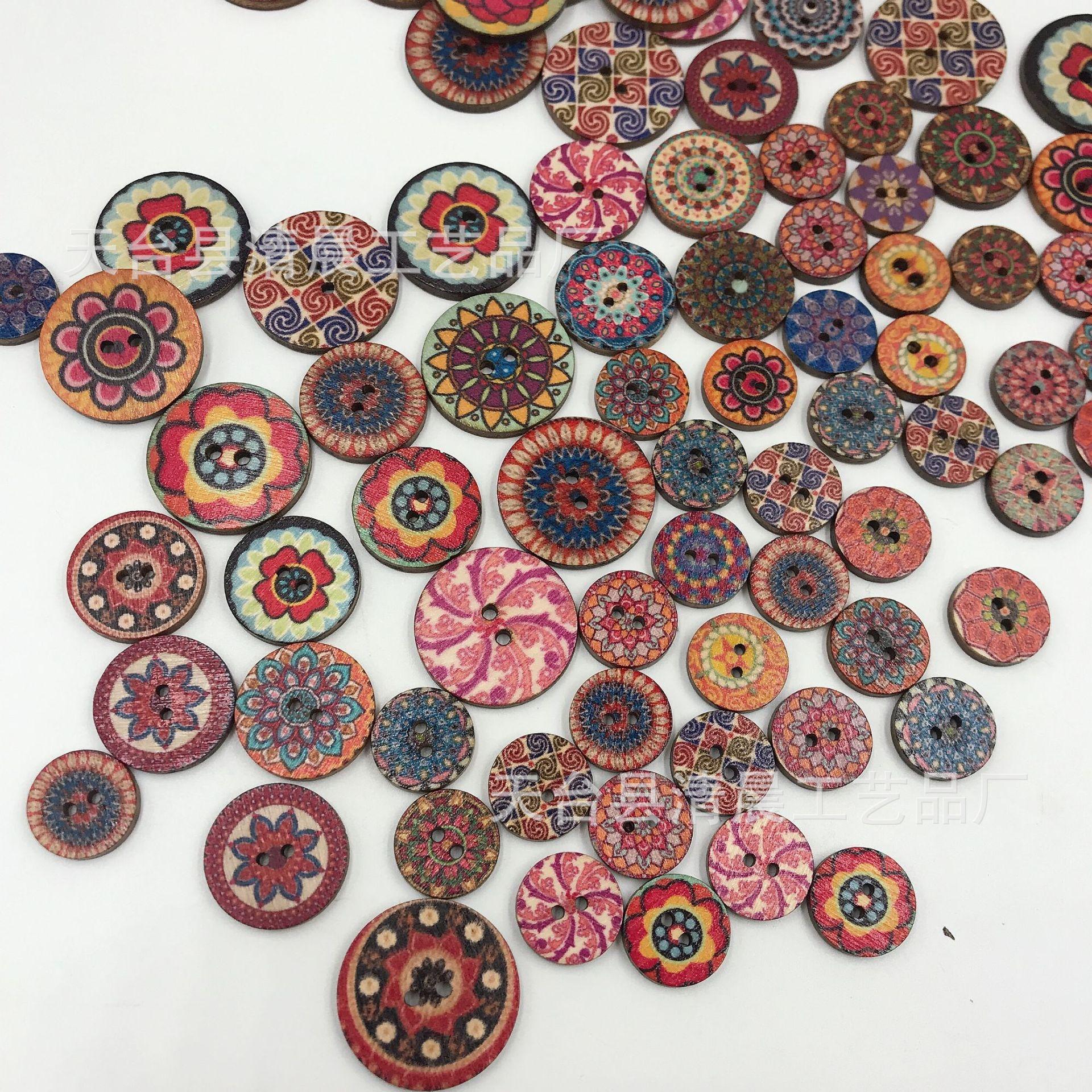 Botones de Madera de Disco Retro de 15/20/25 mm Pintados Impresos Botones de Madera de Dos Ojos Accesorios de Artesanía DIY