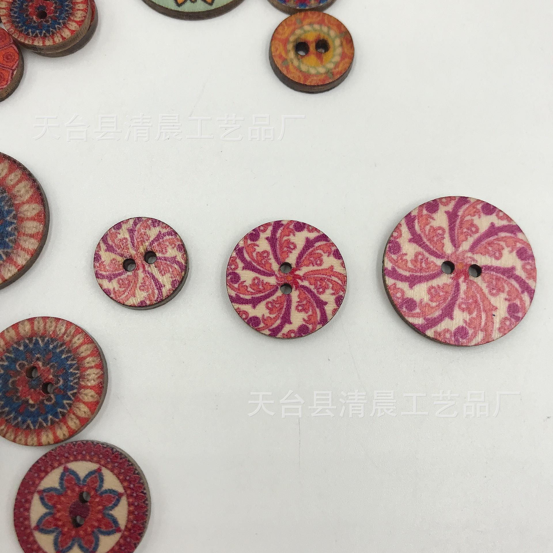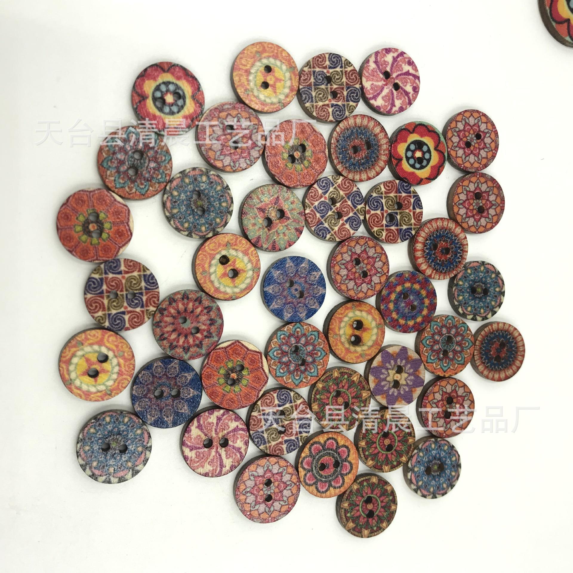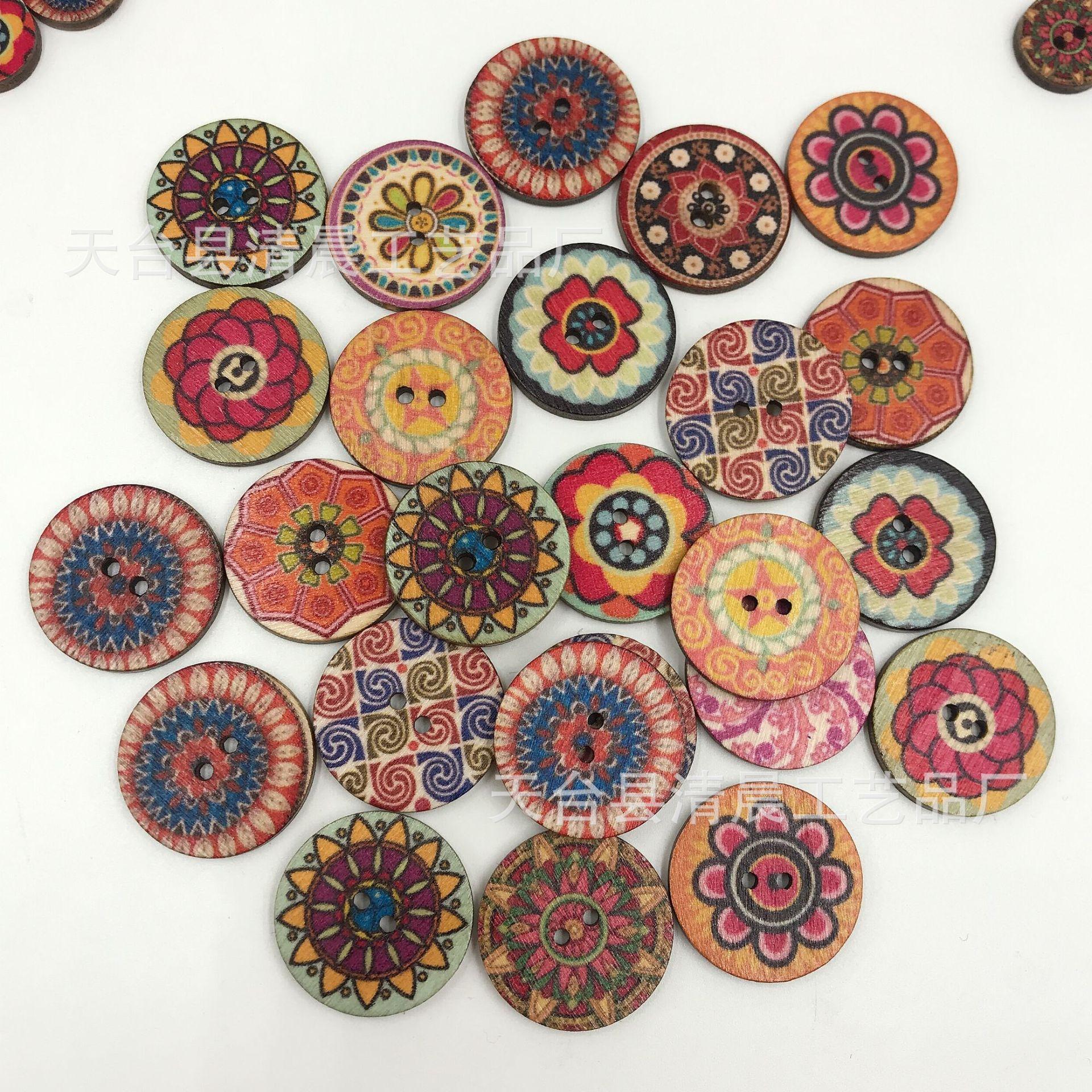 Botones de Madera de Disco Retro de 15/20/25 mm Pintados Impresos Botones de Madera de Dos Ojos Accesorios de Artesanía DIY