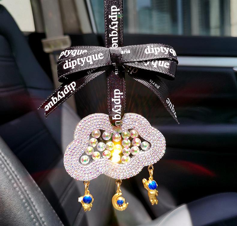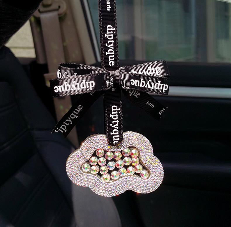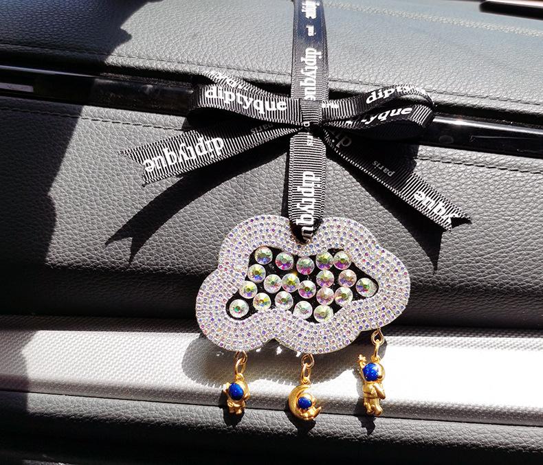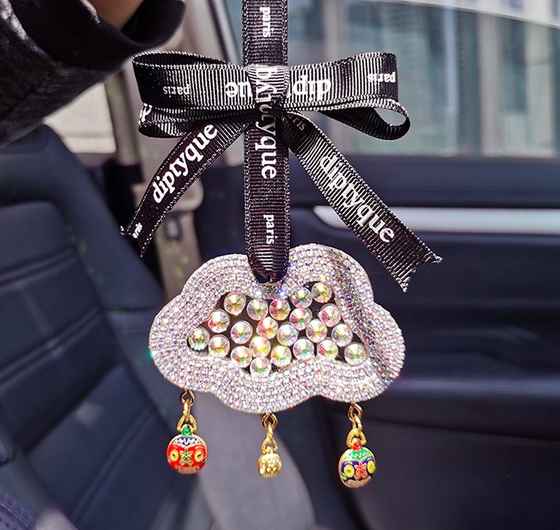 Colgante de coche con forma de nube de diamantes creativa, colgante de espejo retrovisor para coche, colgante decorativo para coche.