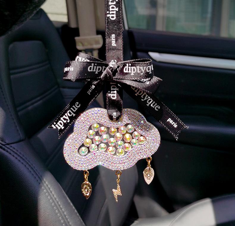 Gem Diamond Cloud Rearview Mirror Hanging, Drill Clouds Rearview Mirror Hanging, Jewel Diamond Cloud Rearview ...