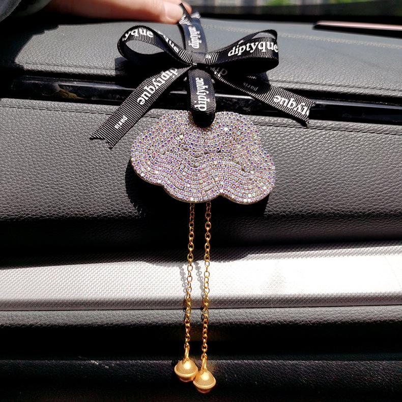 Full Drill Cloud Rearview Mirror Hanging + Double Bell Pendant