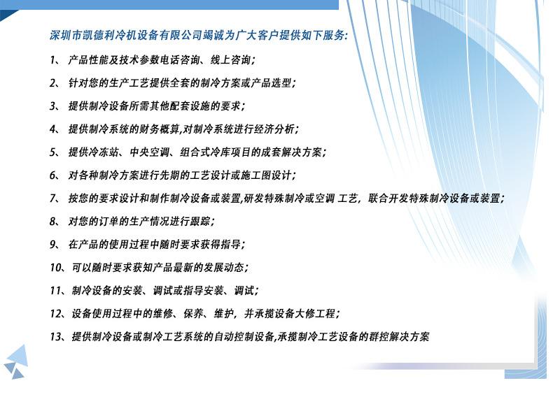 Shenzhen Kaideli Refrigeration Equipment Co., Ltd. es un fabricante profesional de enfriadores, enfriadores industriales, congeladores industriales, congeladores, enfriadores de baja temperatura. Congelador de baja temperatura, unidad de refrigeración, enfriador enfriado por agua, enfriador de tornillo enfriado por agua, enfriador de tornillo, enfriador de tornillo, enfriador industrial de tornillo, enfriador de tornillo enfriado por agua, enfriador de tornillo enfriado por agua, enfriador industrial de tornillo enfriado por agua, enfriador de caja enfriado por agua, enfriador enfriado por aire, enfriador de caja enfriado por aire, máquina de agua helada y otros equipos de refrigeración pueden personalizar varios enfriadores grandes y pequeños para los clientes.,¡Recibiremos preguntas vía telefónica!