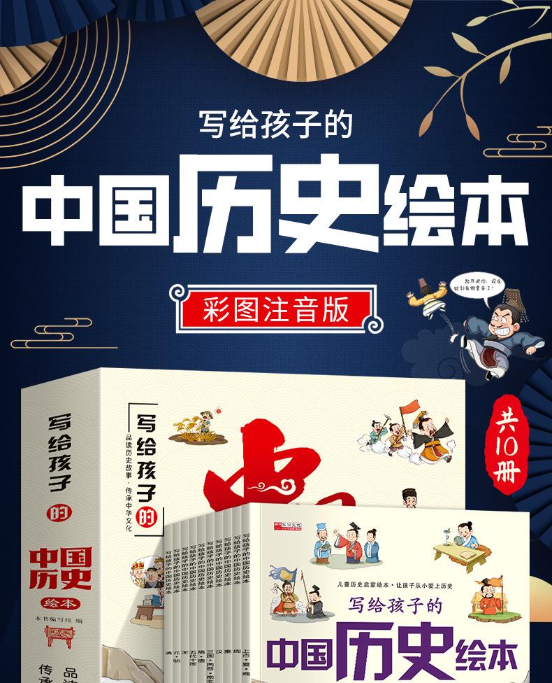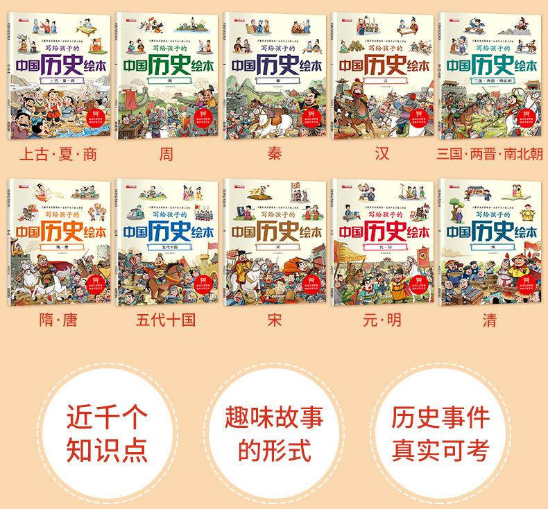 Libro ilustrado histórico chino para niños, todos los 10 volúmenes de la versión fonética, libro de cuentos históricos para niños de 1.º, 2.º y 3.º grado