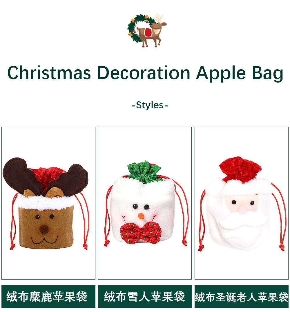 Flannel elk apple bag, Flannel Santa Claus apple bag, Flannel snowman apple bag