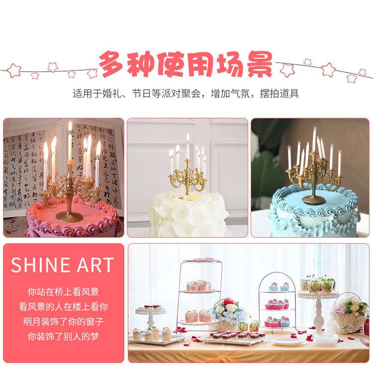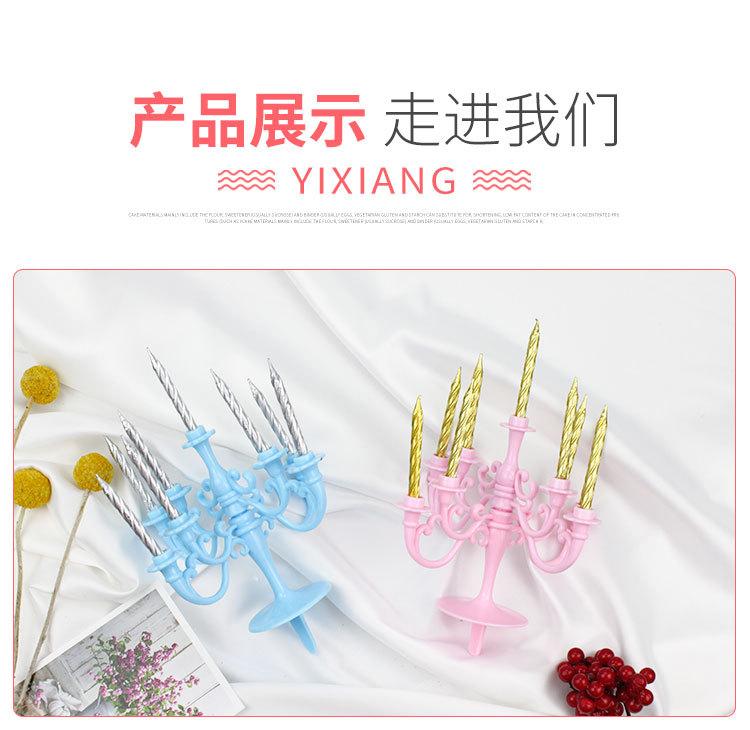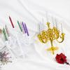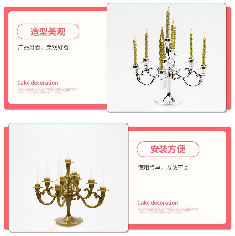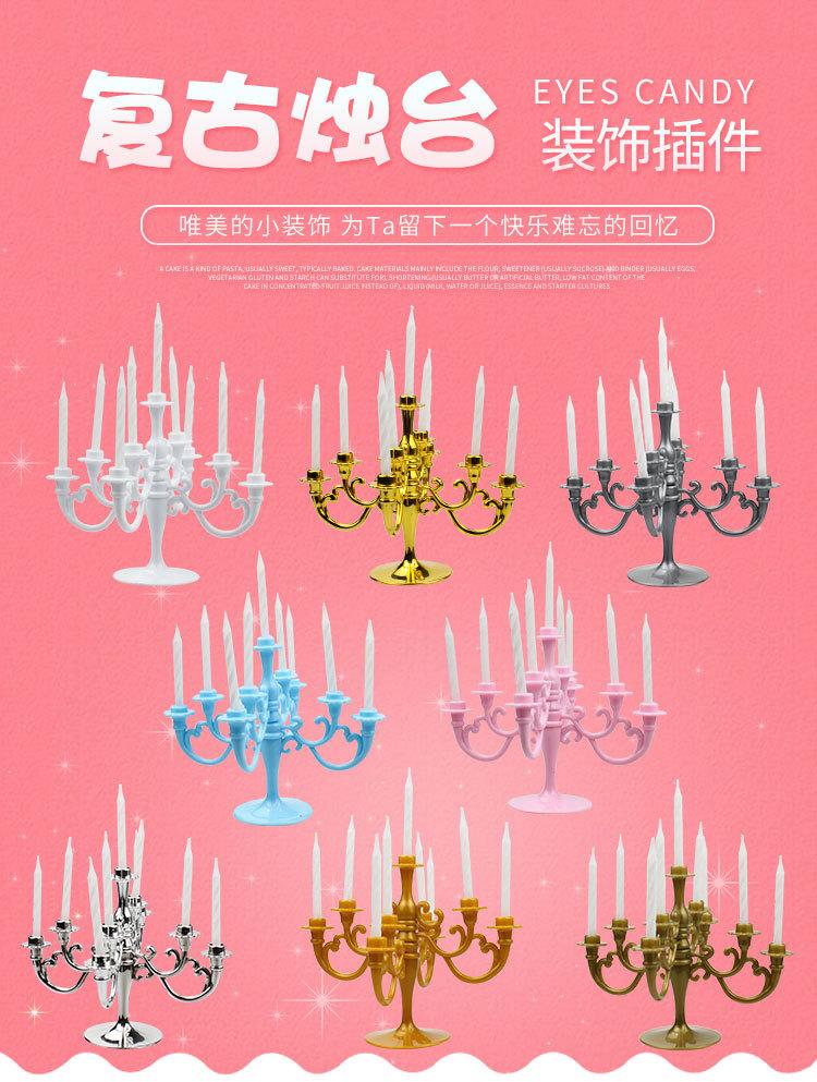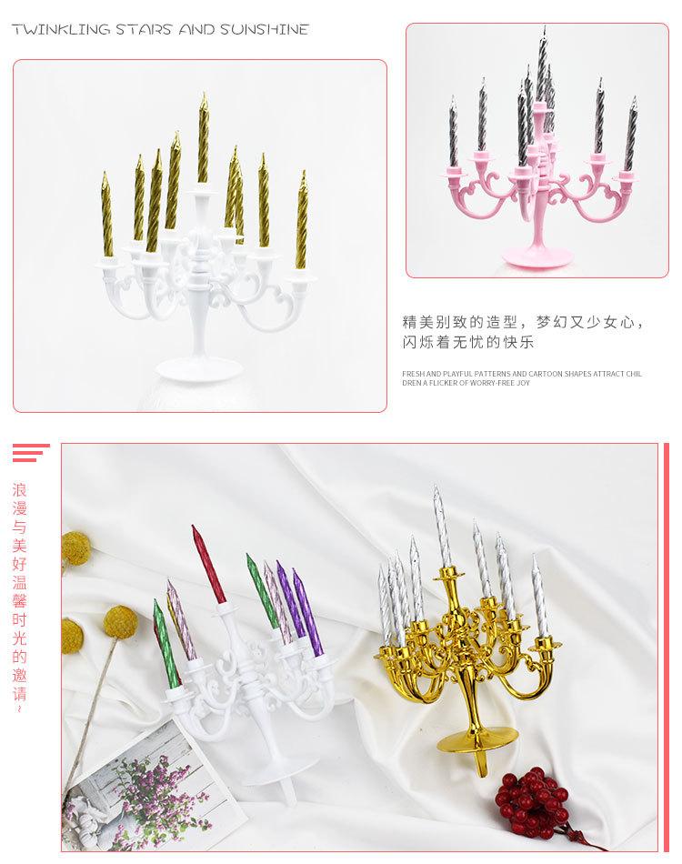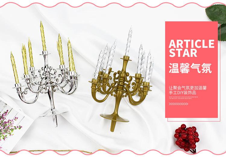 1 juego contiene 1 candelabro y 9 velas. El candelabro está hecho de plástico o chapado en oro o plata.
