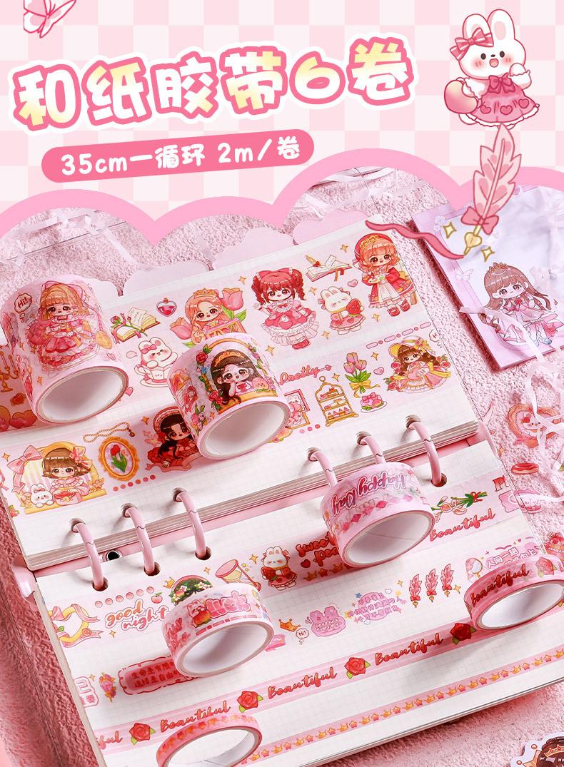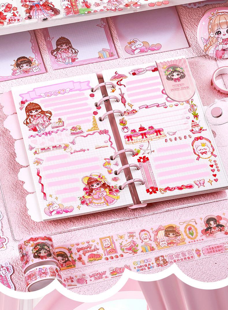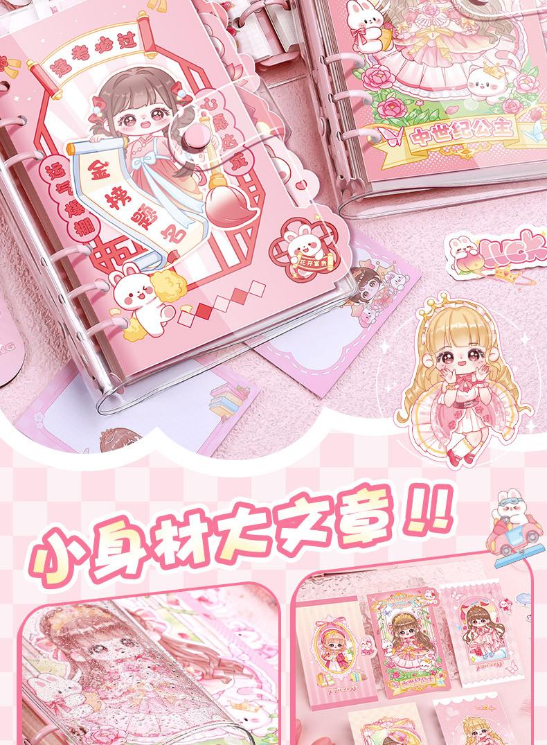 Cuaderno de mano Kapi Bara, cuaderno de hojas sueltas, pegatinas de corazón para niña, bonito cuaderno de mano, diario, caja de regalo