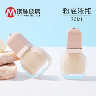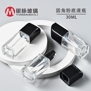 | Botella de base líquida con esquinas redondeadas de 30 ml con veta plateada, fondo grueso, cuadrada, para loción, crema aislante, protector solar, de vidrio |