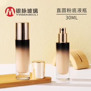 | Botella de loción con bomba de presión cilíndrica de 30 ml con veta plateada, botella de vidrio para crema BB, crema aislante, base líquida |