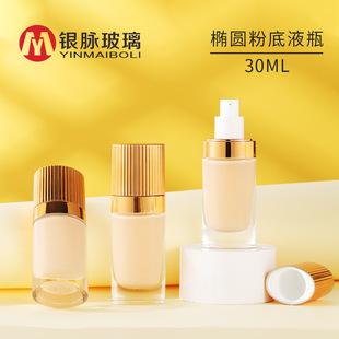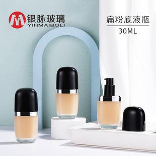 | Botella de loción plana de 30 ml con veta plateada, con aislamiento ovalado, para crema BB, de vidrio, vacía, para productos de cuidado de la piel, base líquida. |