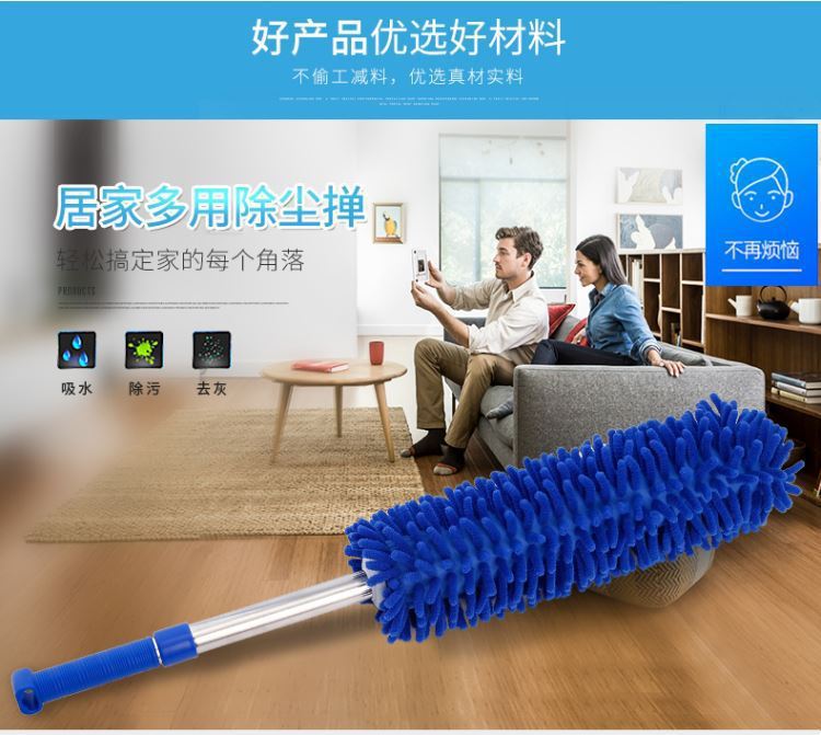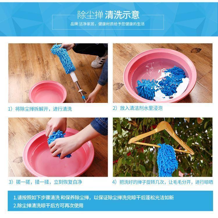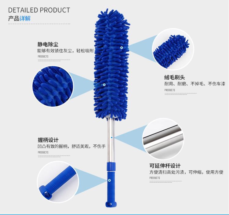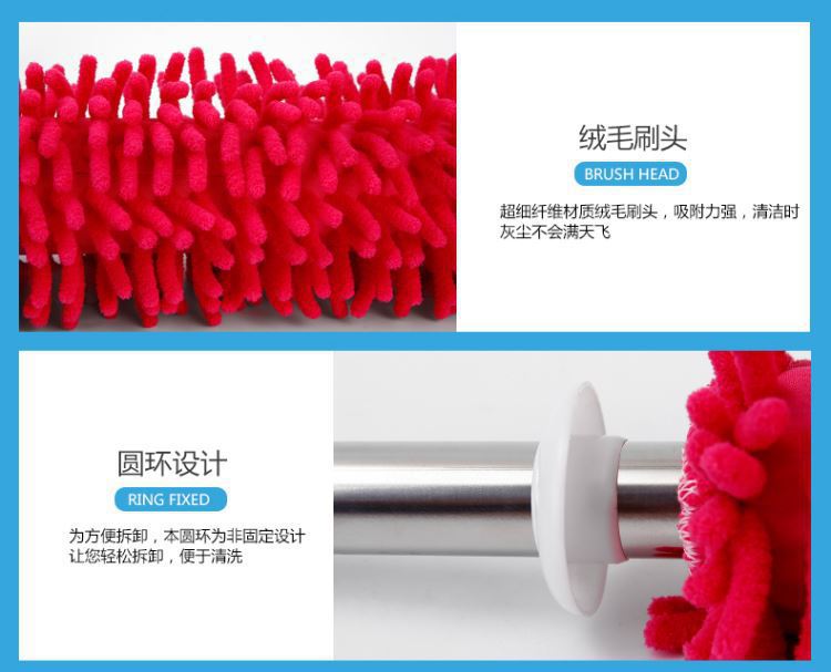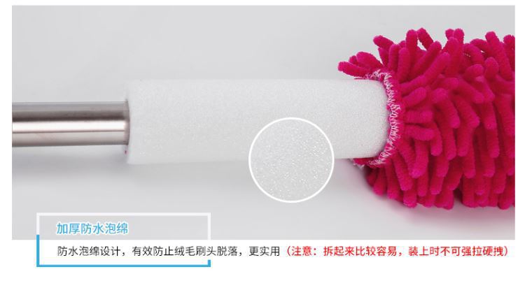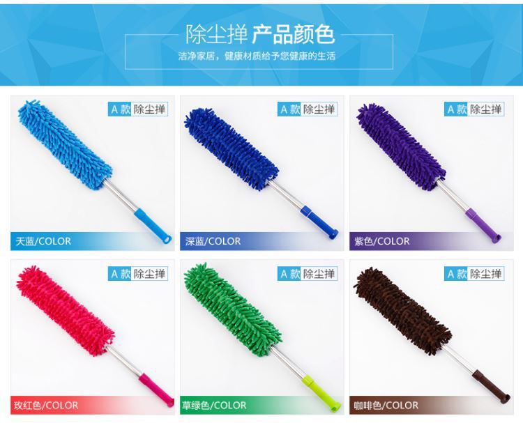 El plumero de chenilla de microfibra de poliéster y nailon está compuesto por numerosas bolas de lana de microfibra y es muy suave. Al limpiar con fuerza, los plumeros comunes levantan mucho polvo, del cual solo una pequeña parte se adsorbe, lo que provoca contaminación secundaria. Las bolas de lana de microfibra de poliéster y nailon presentan numerosos huecos. Al ser cilíndricas, su capacidad de absorción de polvo es varias veces superior a la de los plumeros comunes. El mango está hecho de un tubo de acero inoxidable de 0,4 mm de espesor, que es elegante, duradero y resistente a la corrosión. Elimina fácilmente el polvo de superficies como ordenadores, muebles, coches, etc.