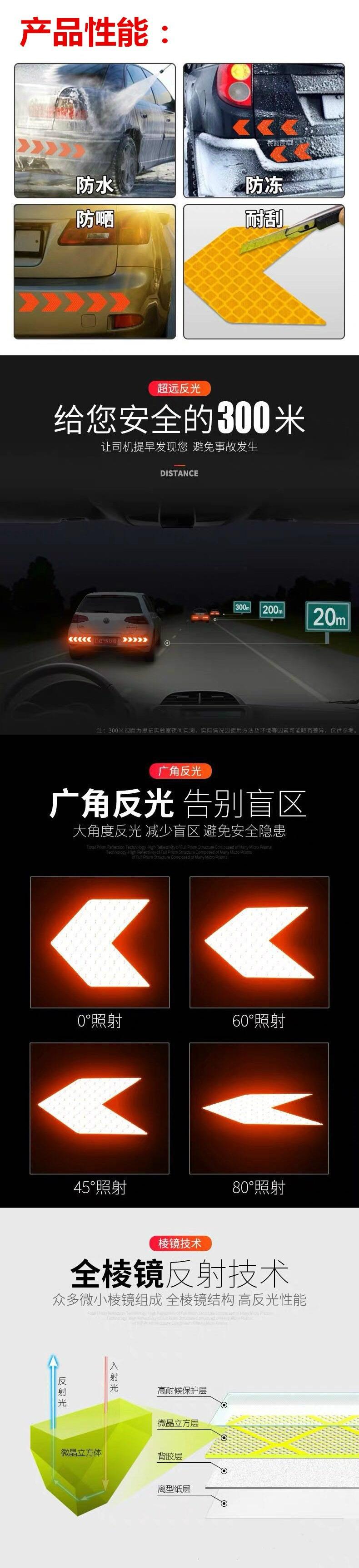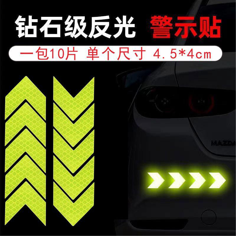 10 piezas/juego pegatina reflectante para coche con flecha advertencia de seguridad película reflectante para carrocería impermeable coche y motocicleta logotipo guía