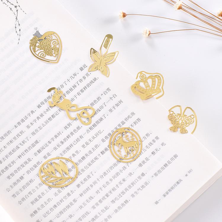 Marcapáginas de metal creativo de papelería coreana, minimarcapáginas hueco de dibujos animados, regalo para estudiantes, papelería