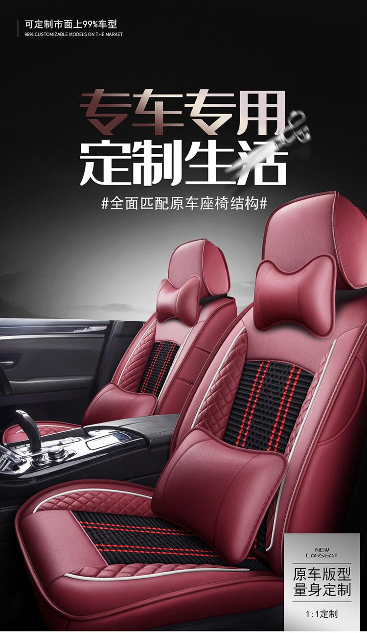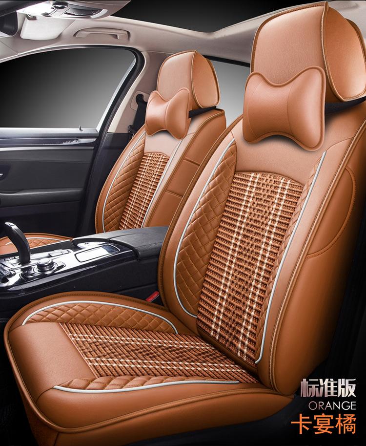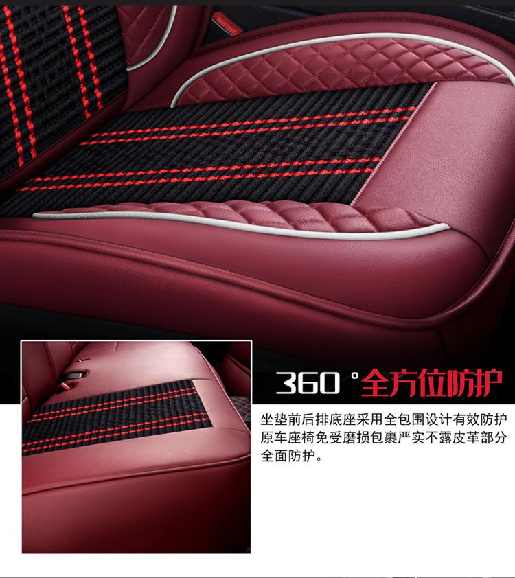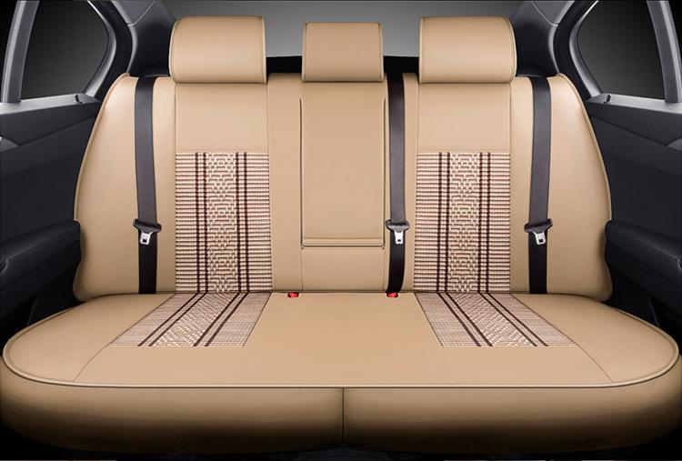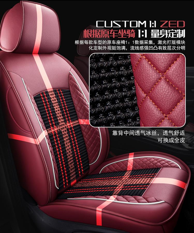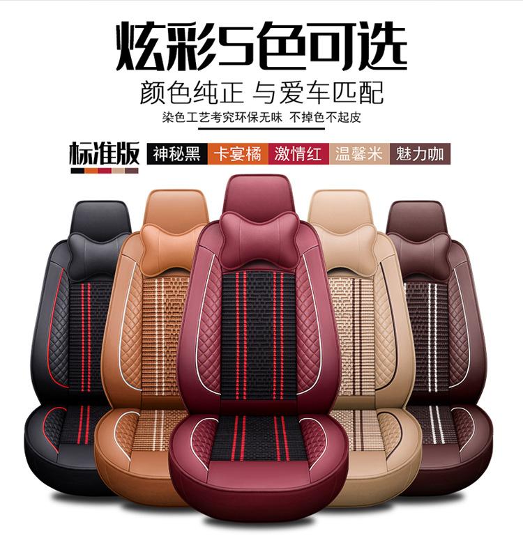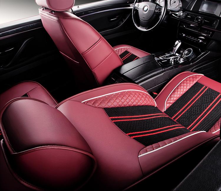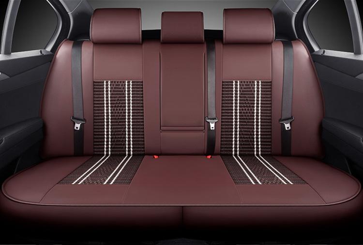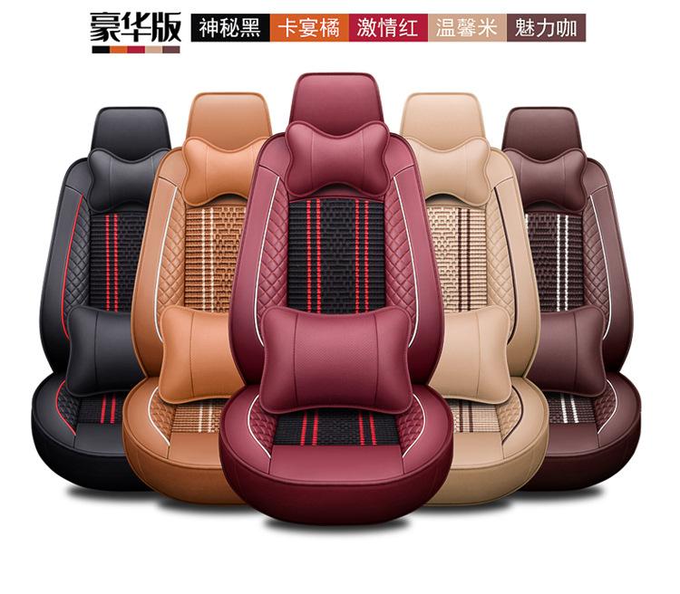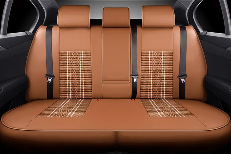 Cojín de asiento de automóvil cómodo especial de cinco asientos de cuero resistente al desgaste y seda de hielo completamente rodeado por una funda de asiento universal para primavera, verano, otoño e invierno.