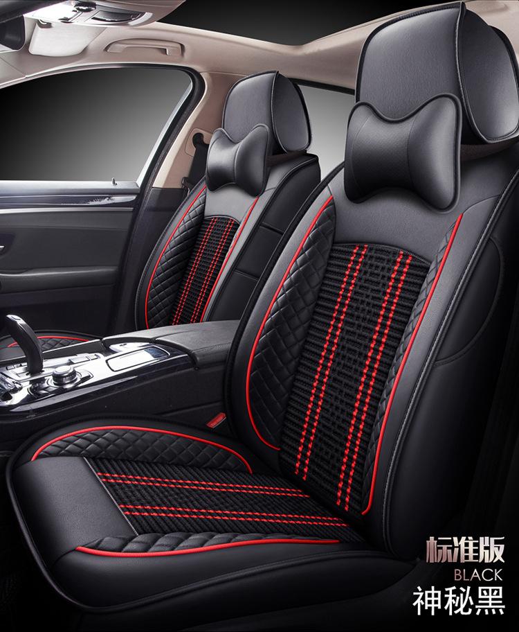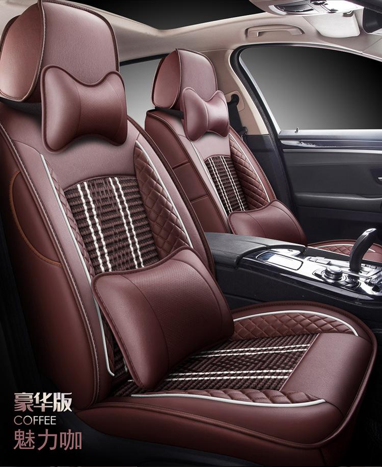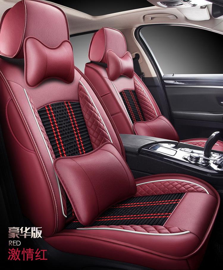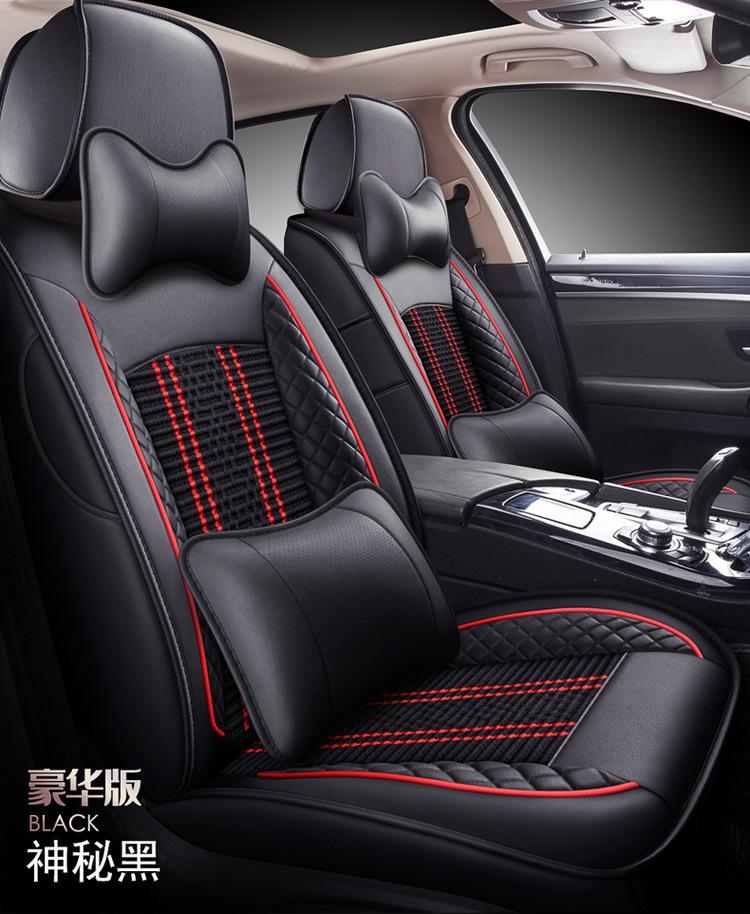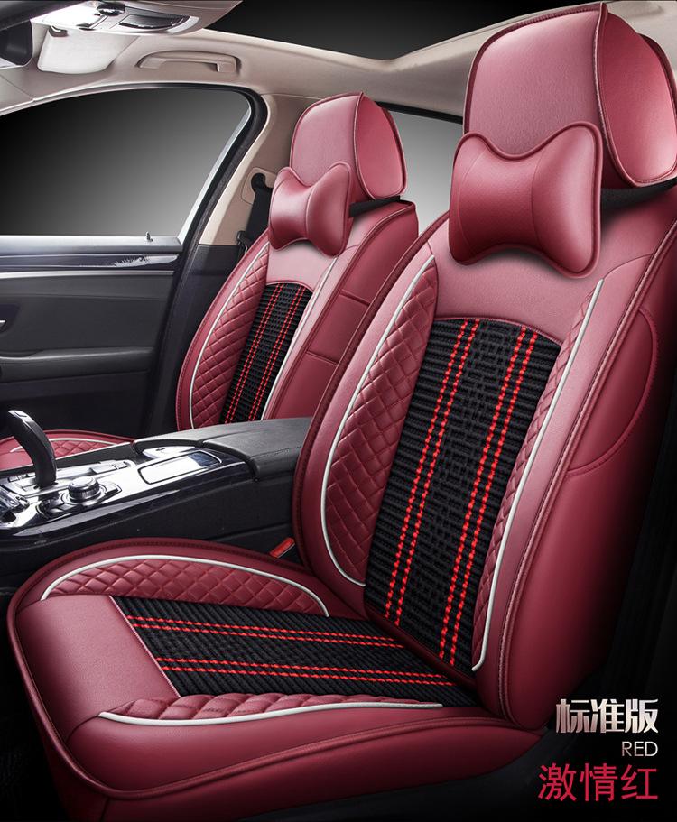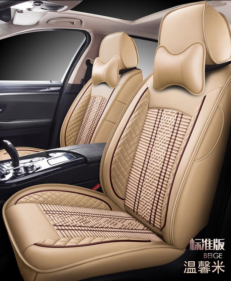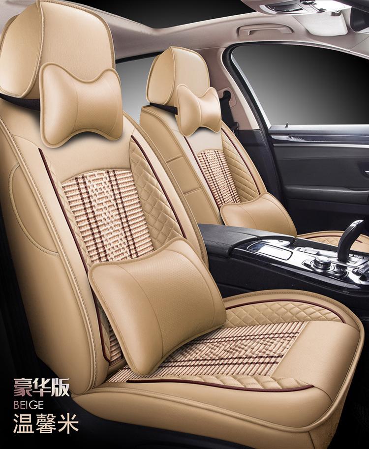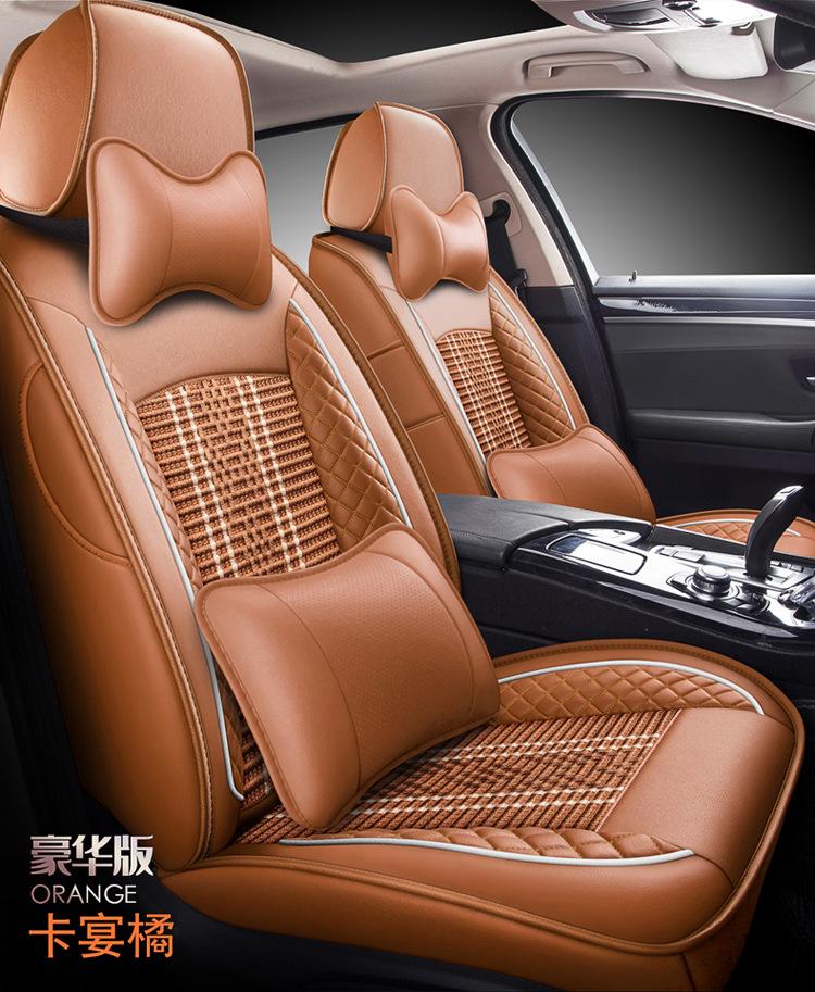 Cojín de asiento de automóvil cómodo especial de cinco asientos de cuero resistente al desgaste y seda de hielo completamente rodeado por una funda de asiento universal para primavera, verano, otoño e invierno.