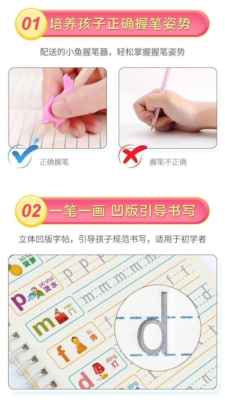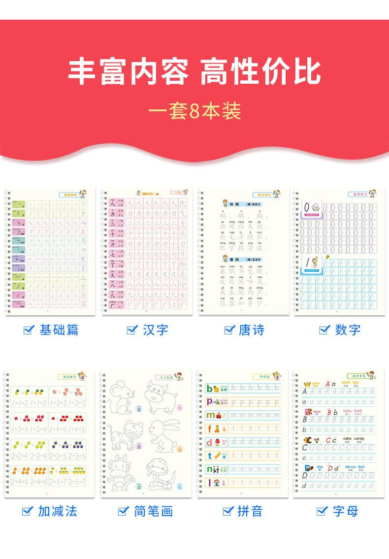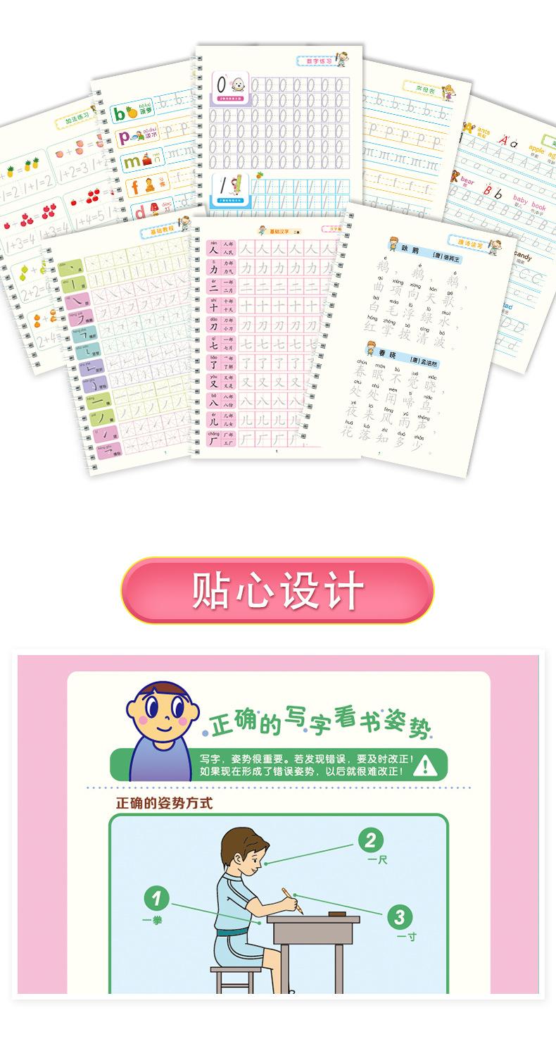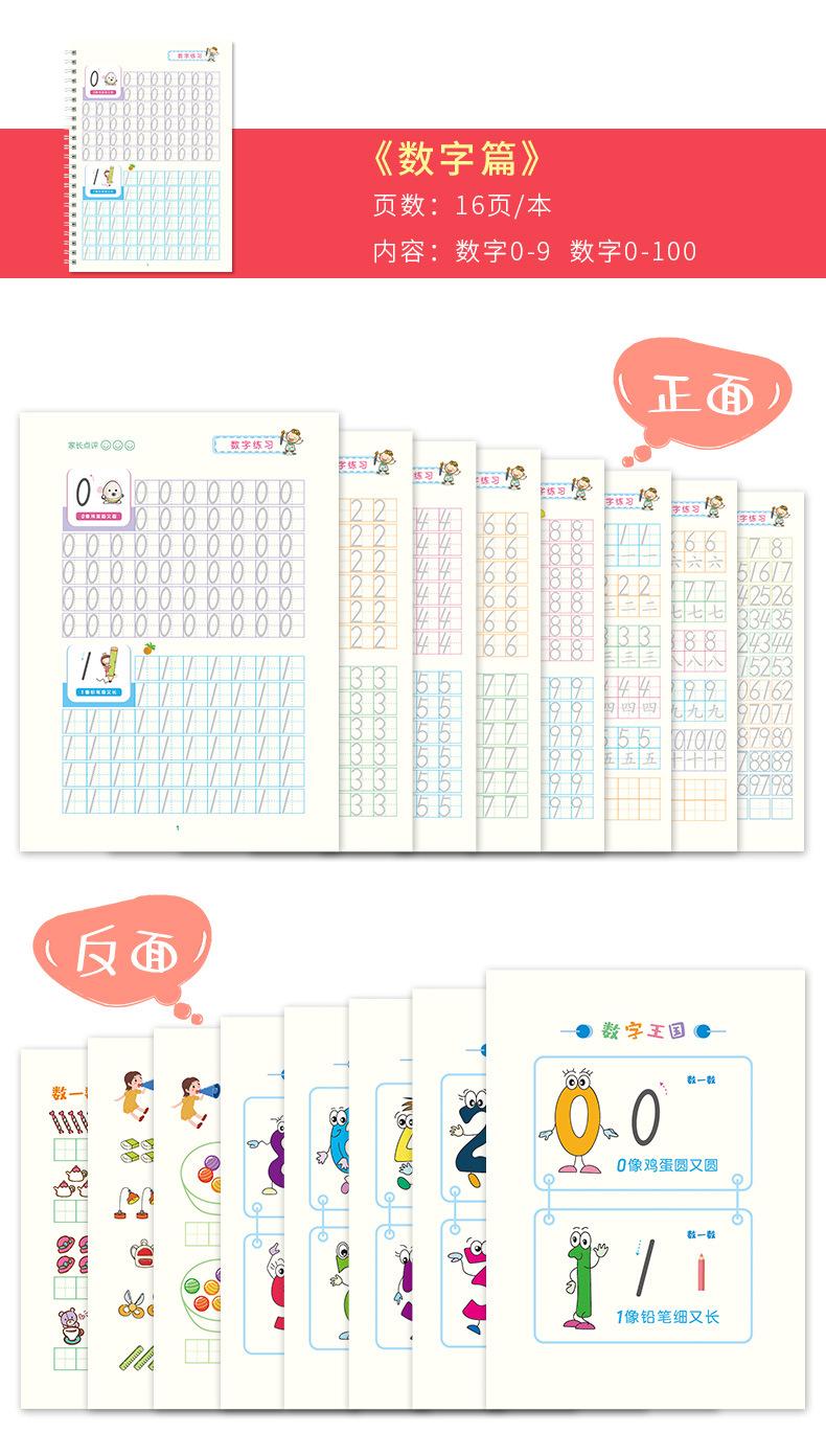 Cuaderno de práctica de números Groove Magic para niños de 3 a 8 años, entrenamiento con lápiz de control, iniciación en jardín de infantes, libro de trazos de secuencia de pinyin