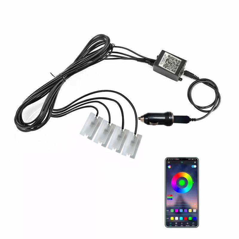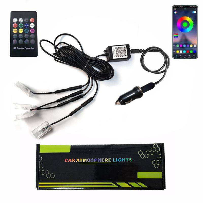 Modelo de APP: 1 juego de luces de ambiente, 1 conector para encendedor de cigarrillos o cable USB, 1 manual de instrucciones completo en inglés, embalaje neutro completo en inglés (nota: no incluye baterías)