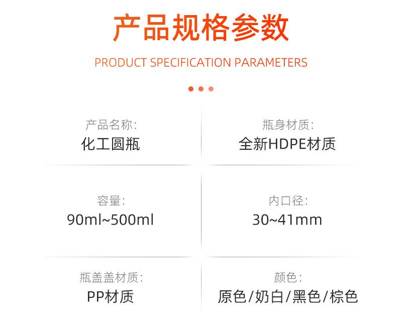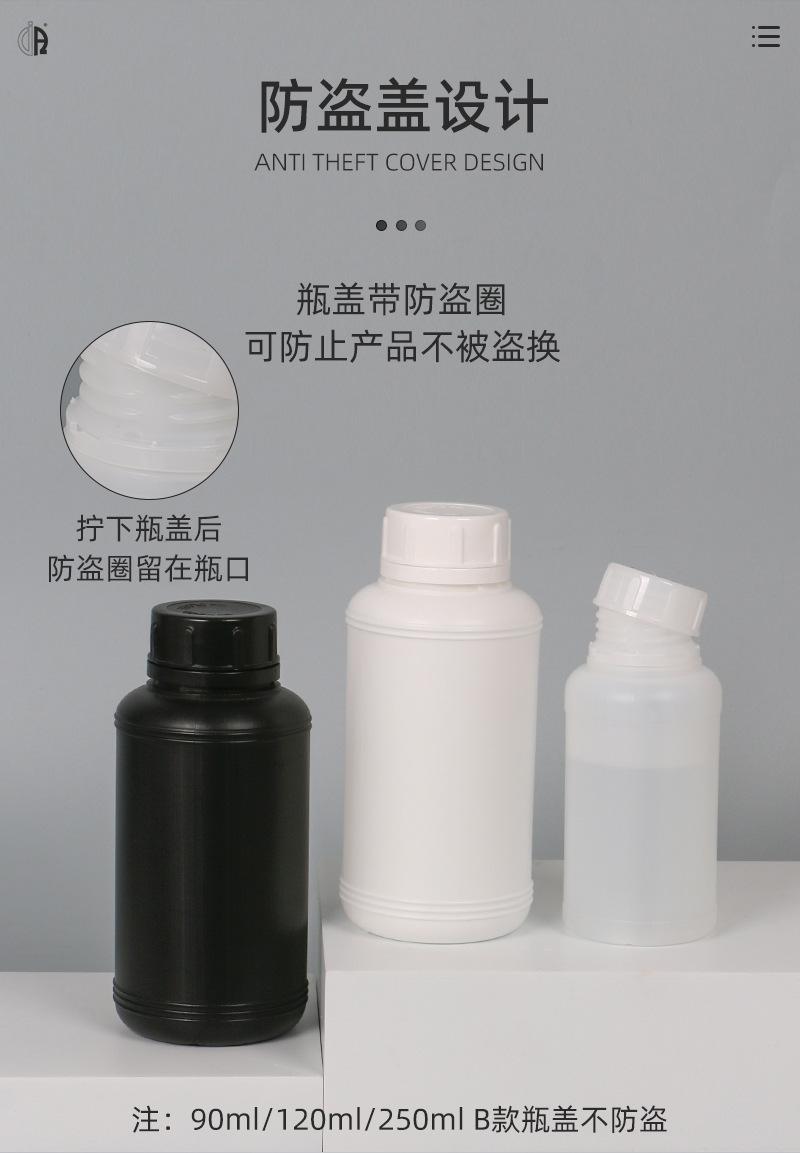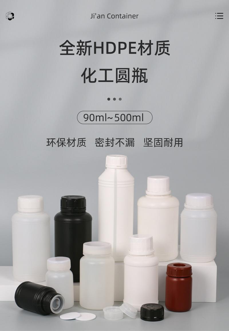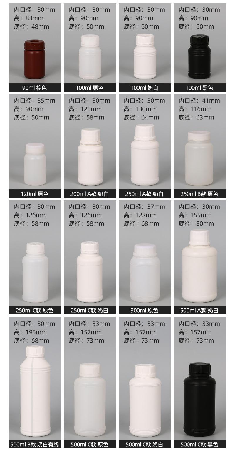 En stock, botella redonda de plástico de boca pequeña para productos químicos de 90 g/100/250/500 ml, botella para embalaje de medicamentos, botella para líquido, línea de nivel de líquido