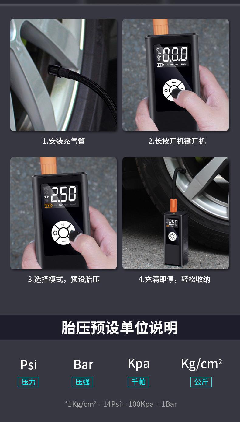 Bomba de Aire Inalámbrica para Coche con Pantalla Digital, Bomba de Aire Portátil de Alta Potencia para Neumáticos de Coche, Bomba de Aire Eléctrica con Medición de Presión