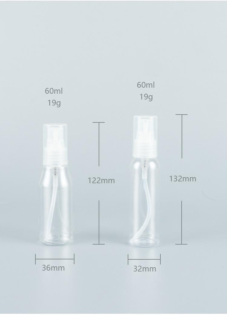 Botella redonda de 60 ml con bomba dosificadora de polvo, loción, envase cosmético, base de presión, desinfectante de manos líquido, subenvasado en PET, botella vacía