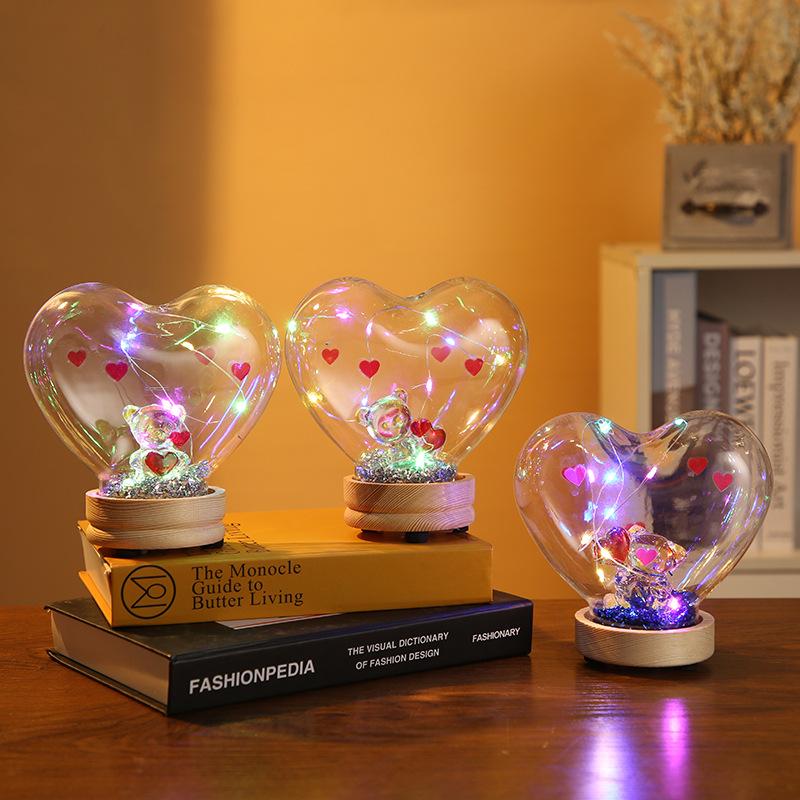 Lámpara de Ambiente Decoración de Habitación Sencilla Decoración de Escena Navideña Adornos de Escritorio Lámpara de Confesión Oso de Amor Venta al por Mayor