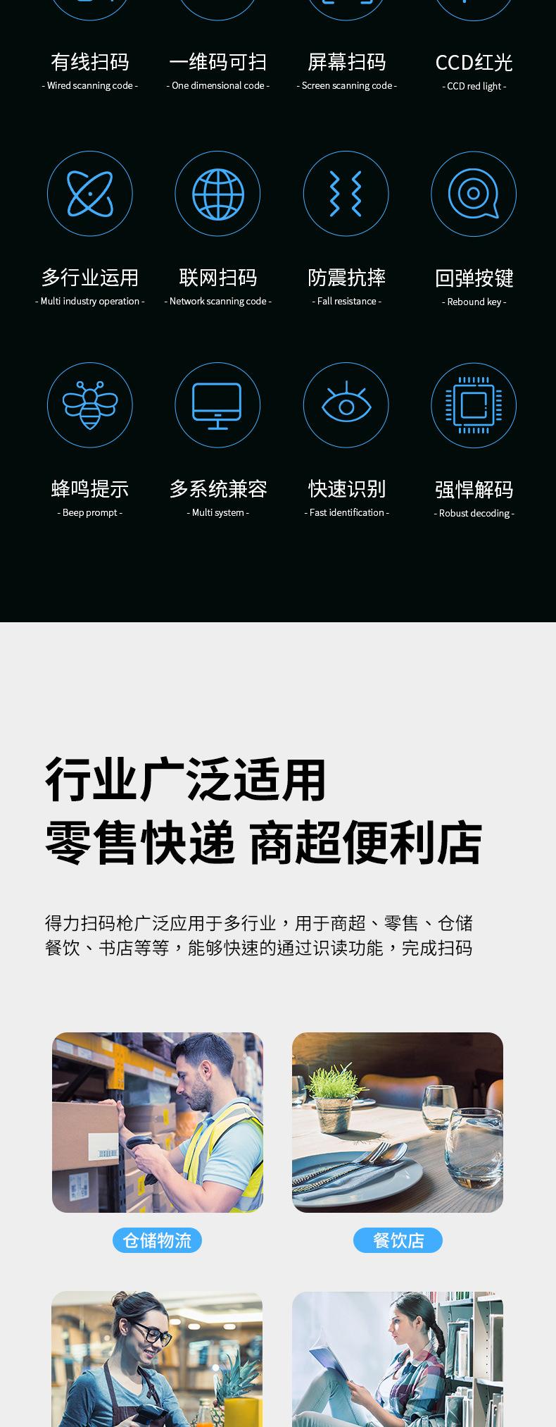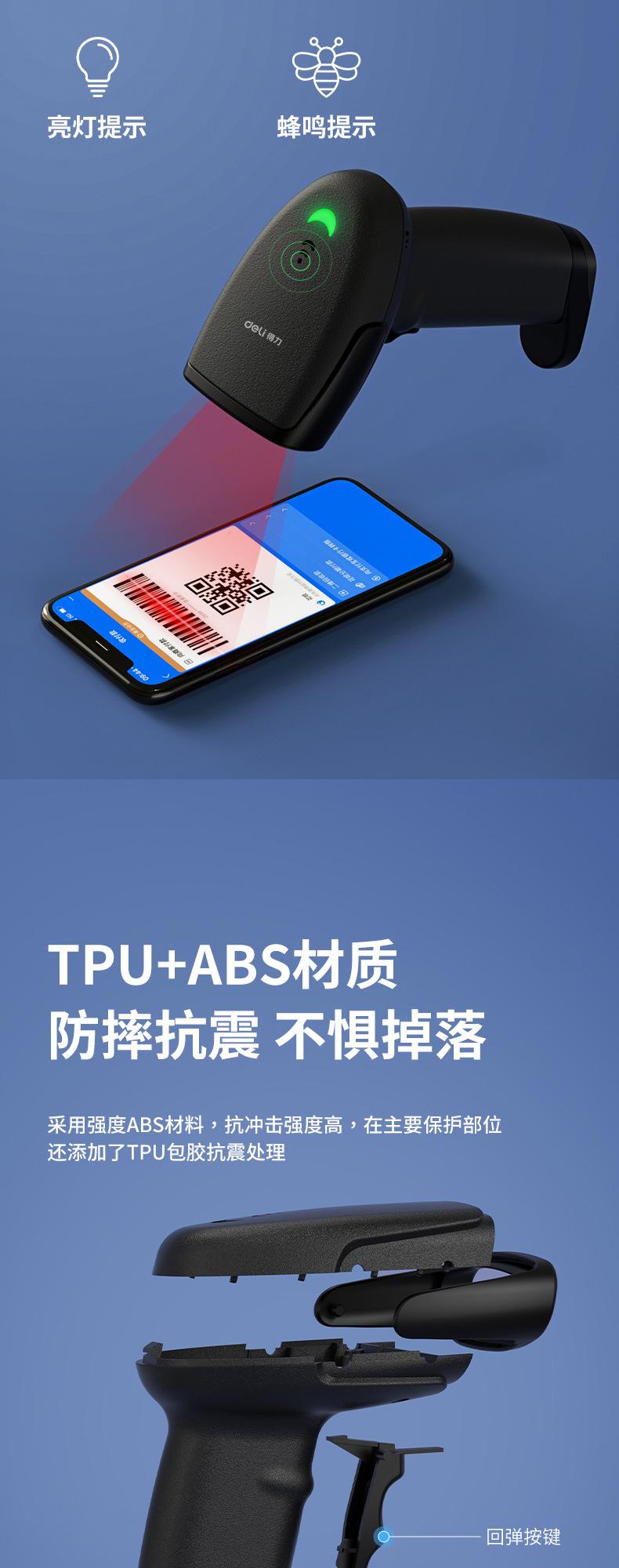 Deli Aa101-D Pistola de Escaneo con Cable Escáner de Código de Barras Unidimensional Inventario de Almacén Exprés 14882W Inalámbrico