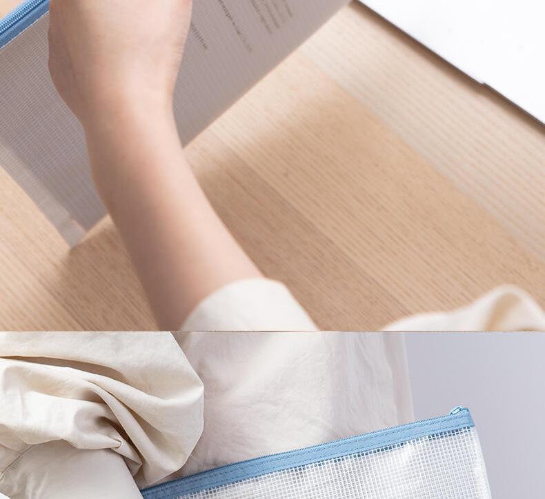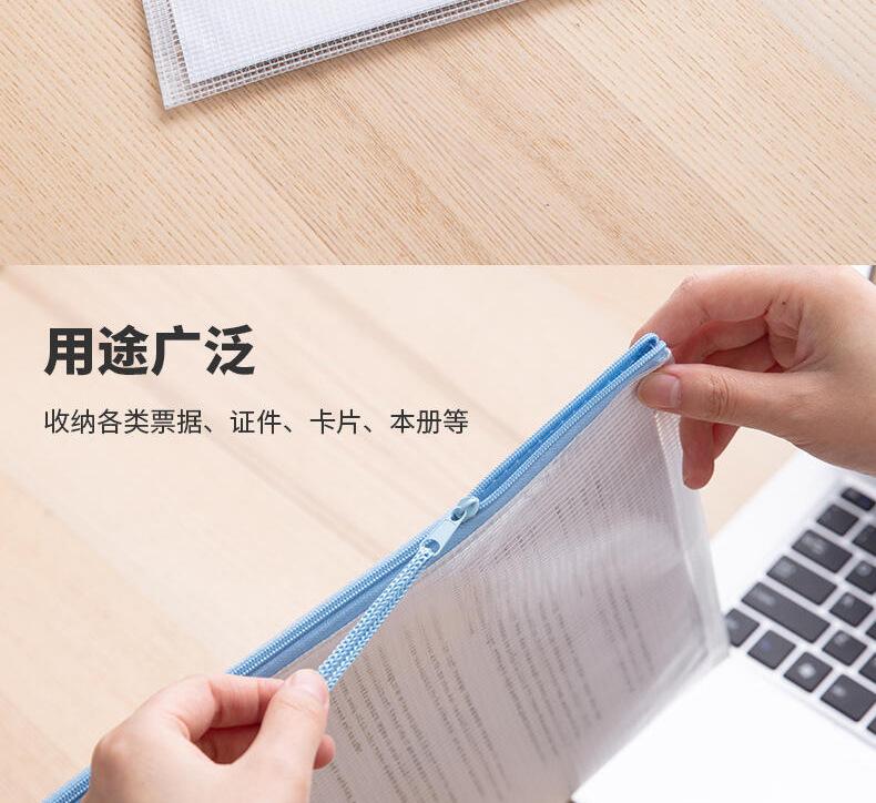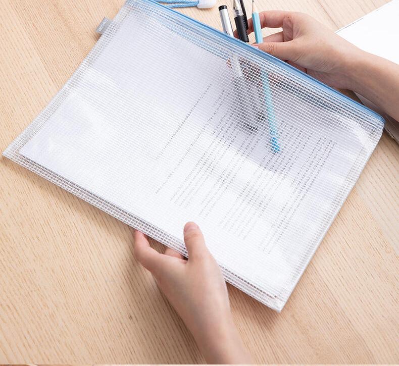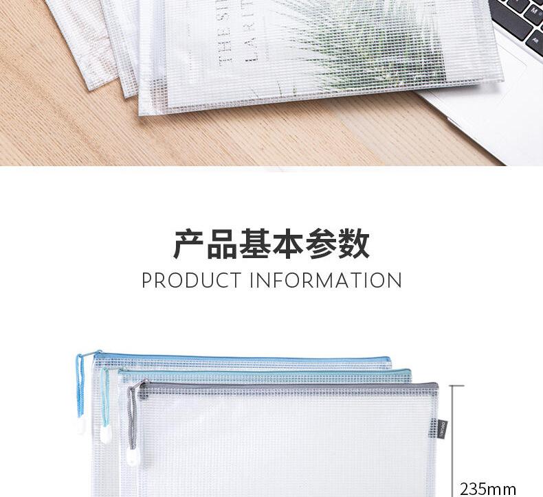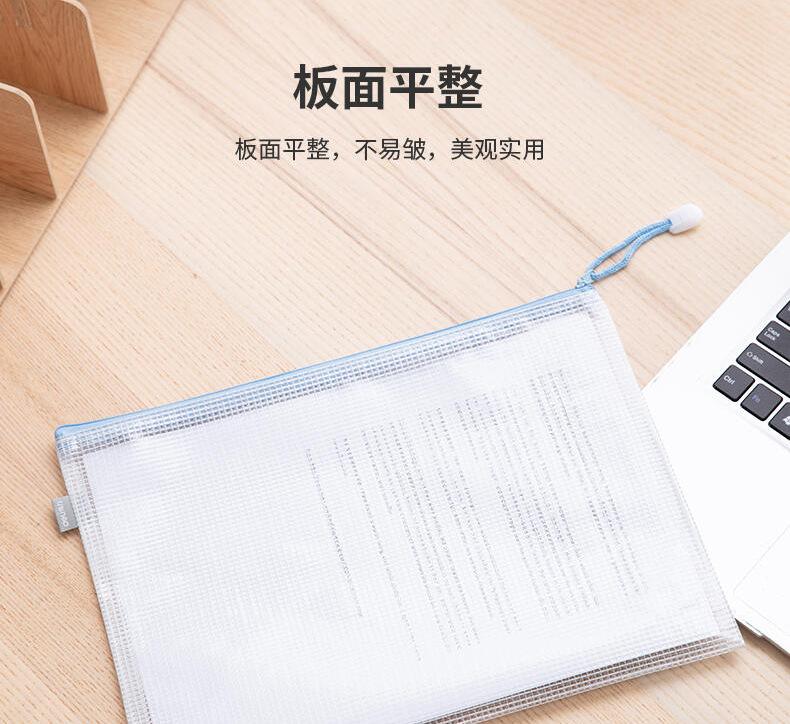 Compra Bolsa con cremallera Deli 63450, tamaño A4, transparente, de malla, impermeable, de papel, para pruebas, de PVC al por mayor en Joom.pro