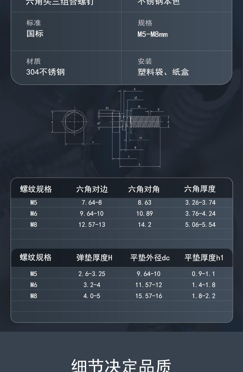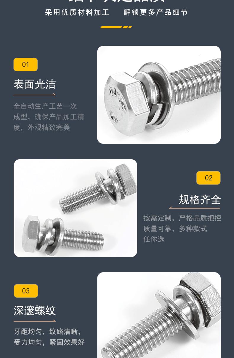 Compra Tornillo de cabeza hexagonal exterior plana de acero inoxidable 304 GB9074 con combinación de tres pernos y almohadilla de resorte plana M5M6M8 al por mayor en Joom.pro