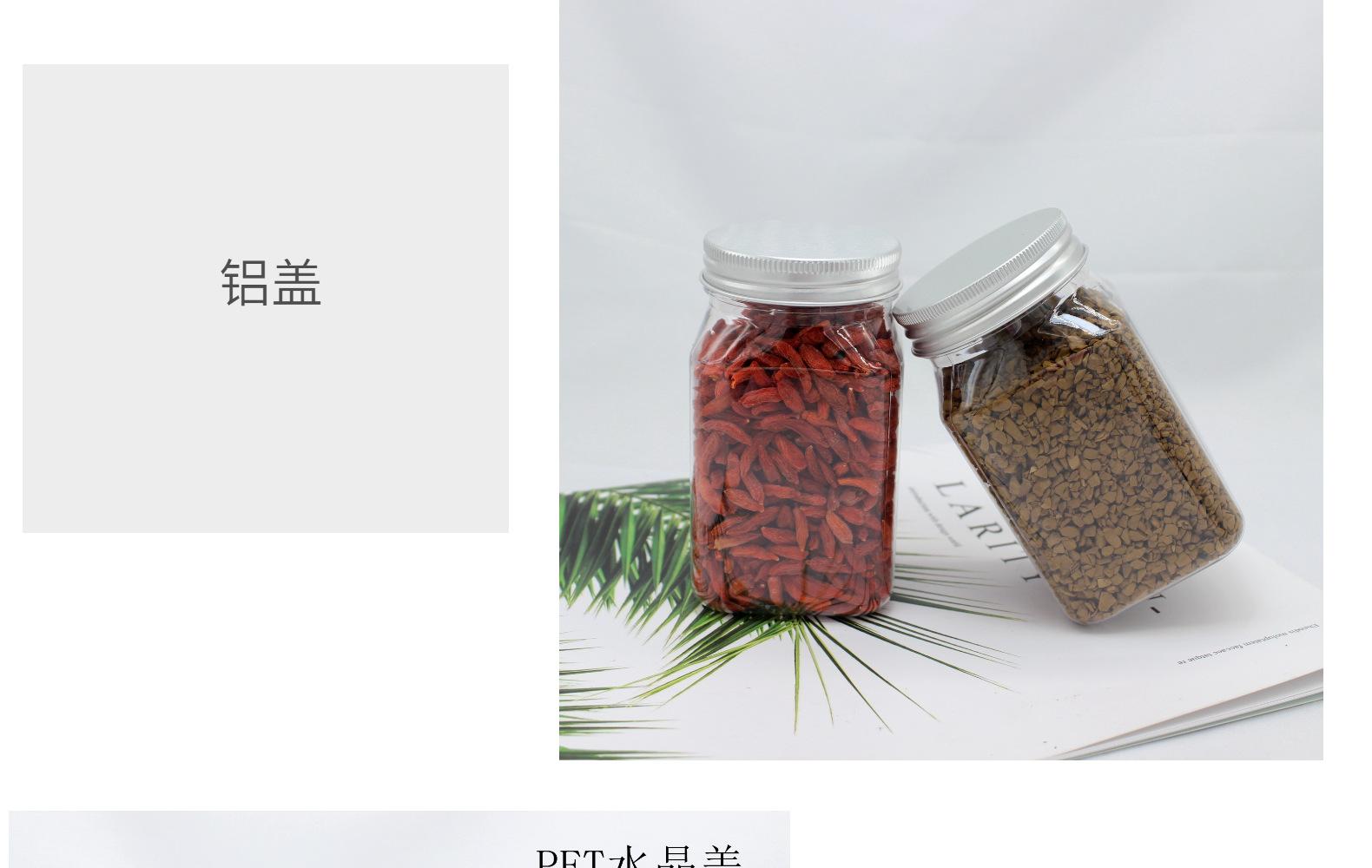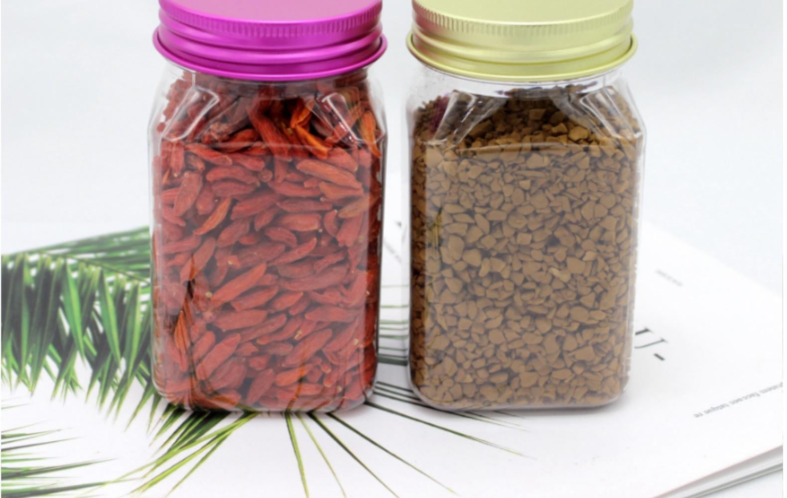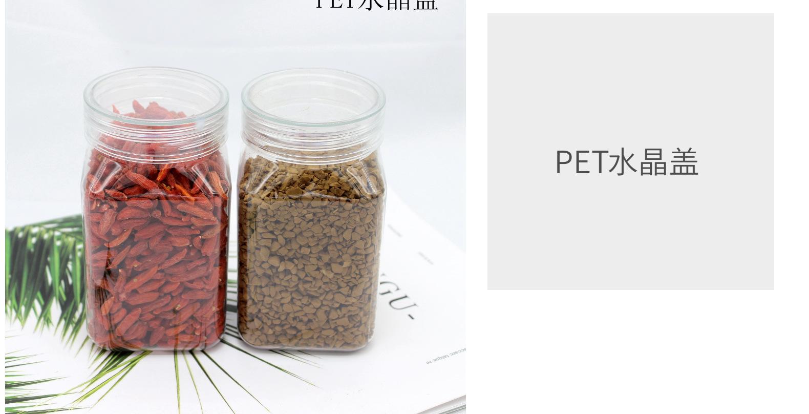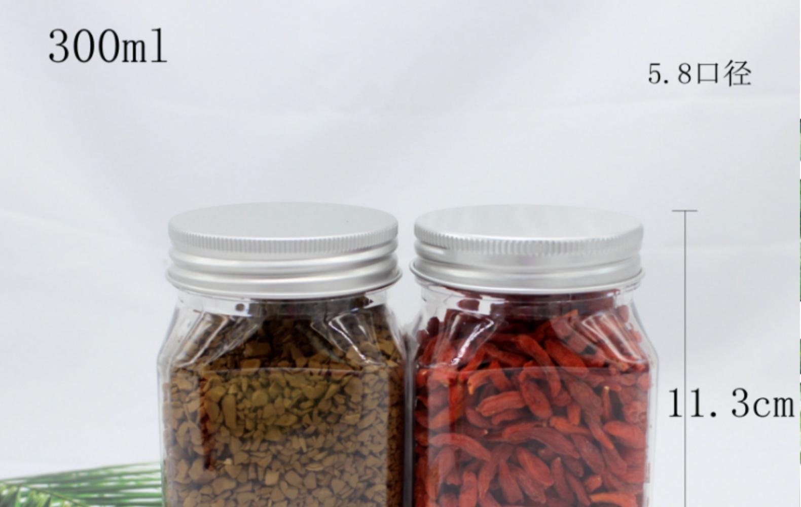 Botella cuadrada de plástico transparente de 300 ml, botella de plástico para envasar miel de 500 g, botella para envasar alimentos con polvo de semilla de coix.